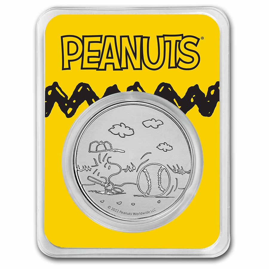 Whether you are a collector, gift-giver or a Woodstock fan, these rounds are a great way to celebrate springtime and baseball season. Add this Peanuts® Baseball - Woodstock at Bat 1 oz Silver round in TEP to your cart today!