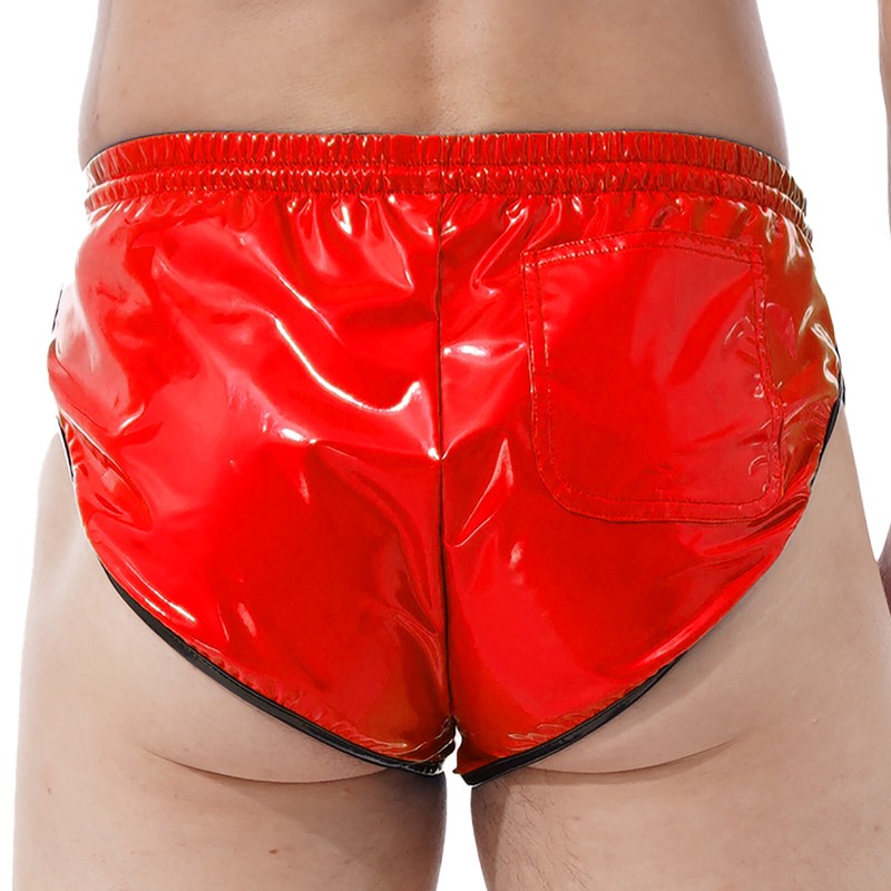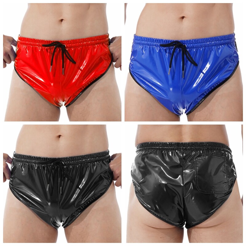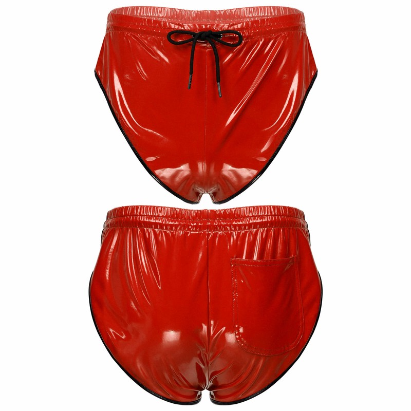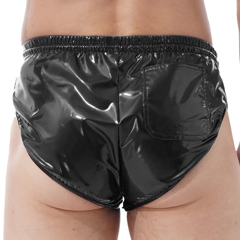 Herren Kordelzug ElasticTaillenumfangBand Lackleder Shorts Slips mit Tasche.