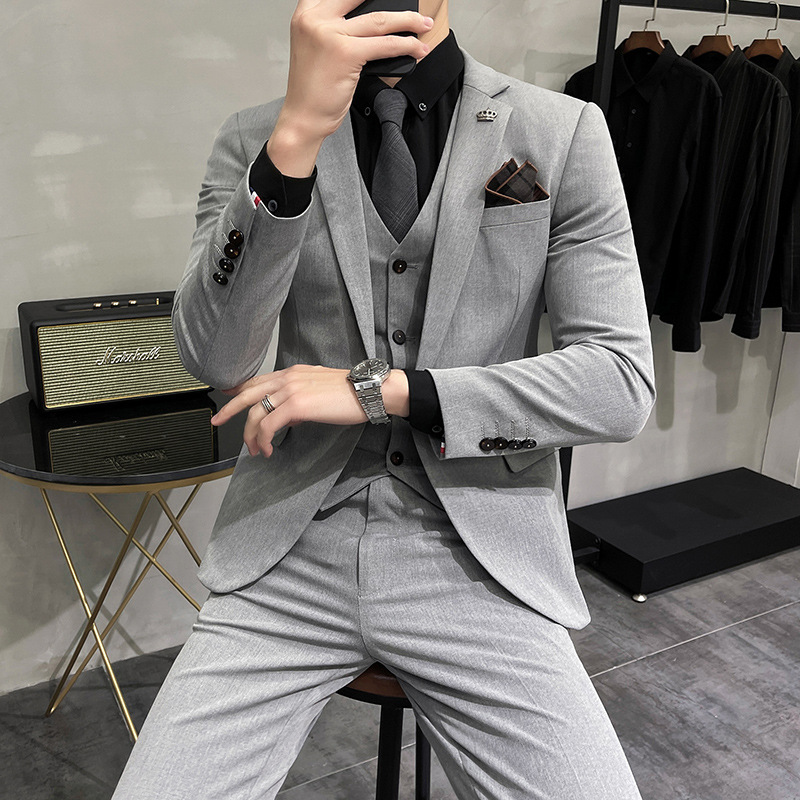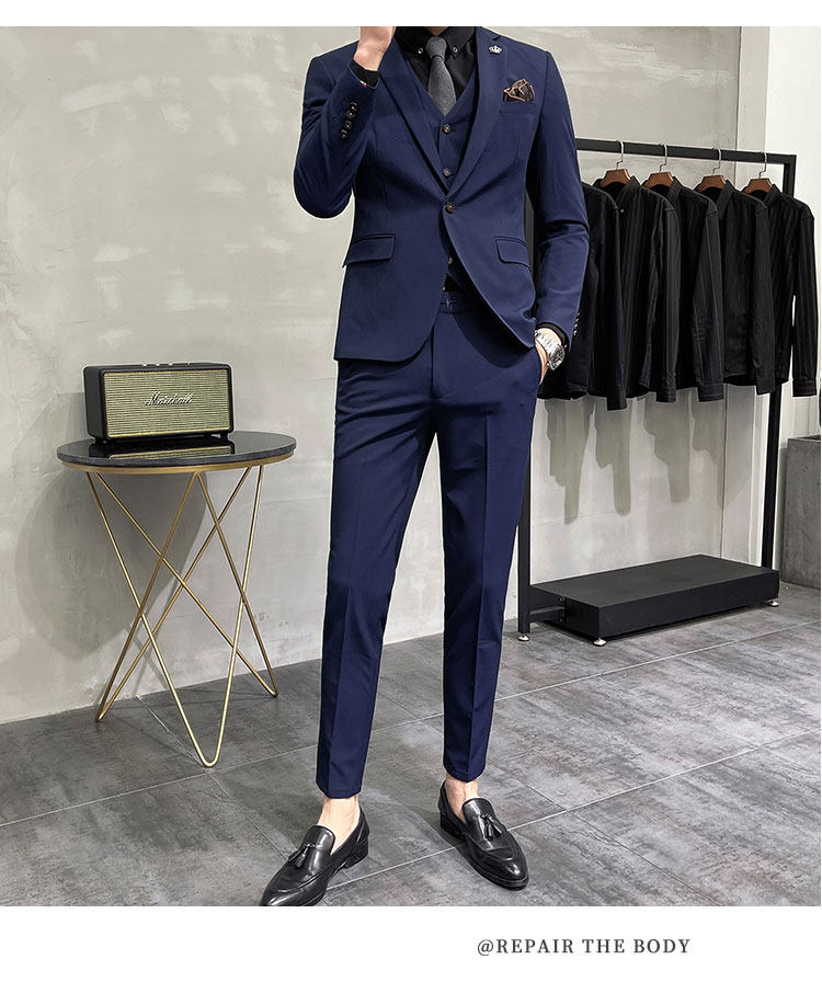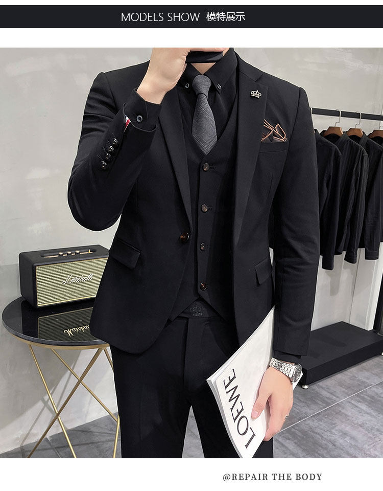 Men's Formal Dress Suit 3PCS Slim Fit Blazer Jacket Vest Pants Shawl collar Prom
