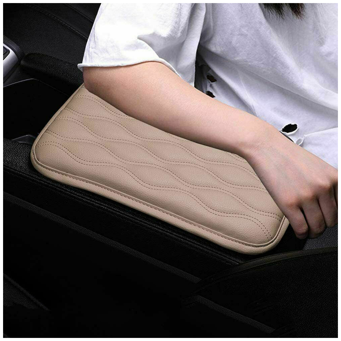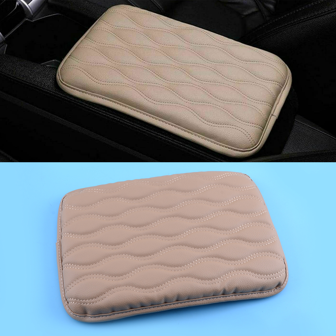 Beige Artificial Leather Car Armrest Pad Cover Center Console Box Cushion Mat