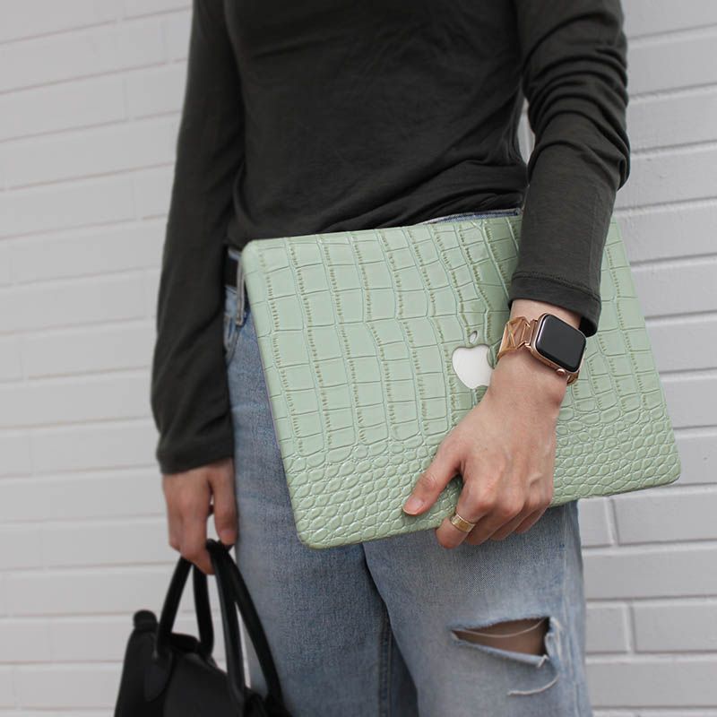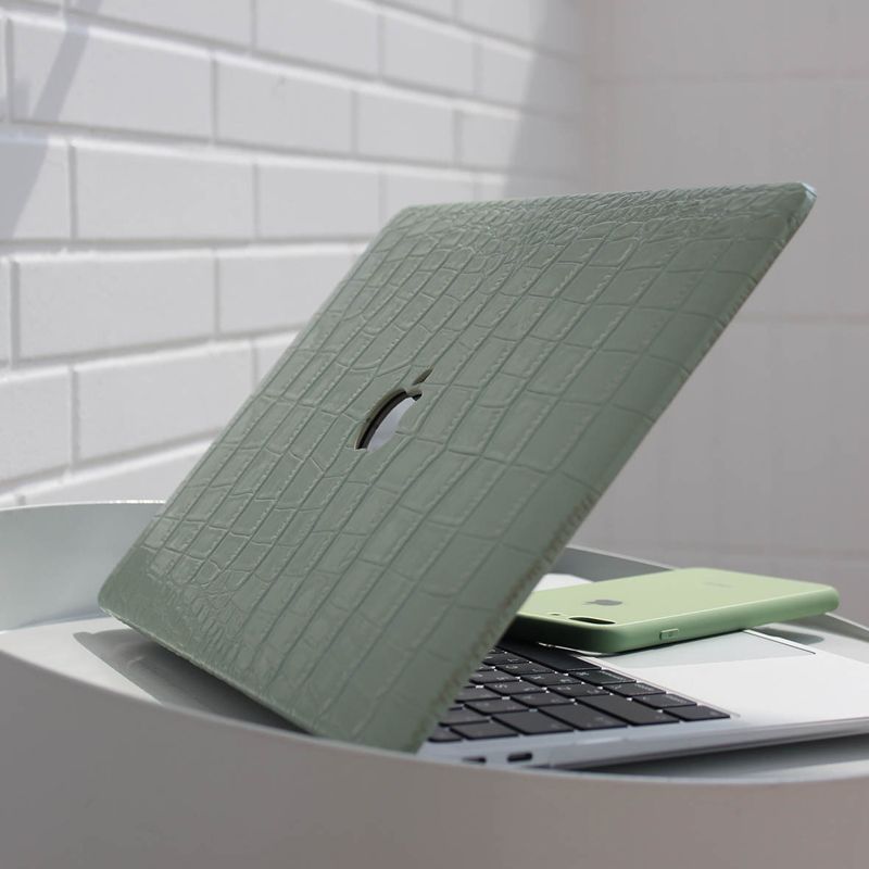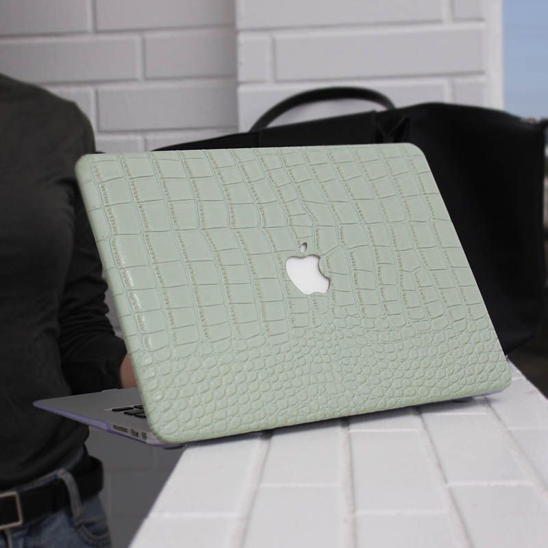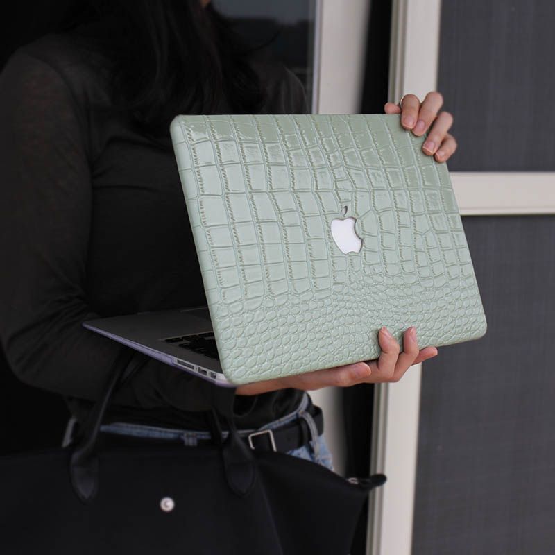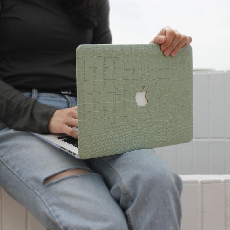 Avocado Green Crocodile PU Leather Shell Case Cover For MacBook Air Pro 13 inch 14 15 16