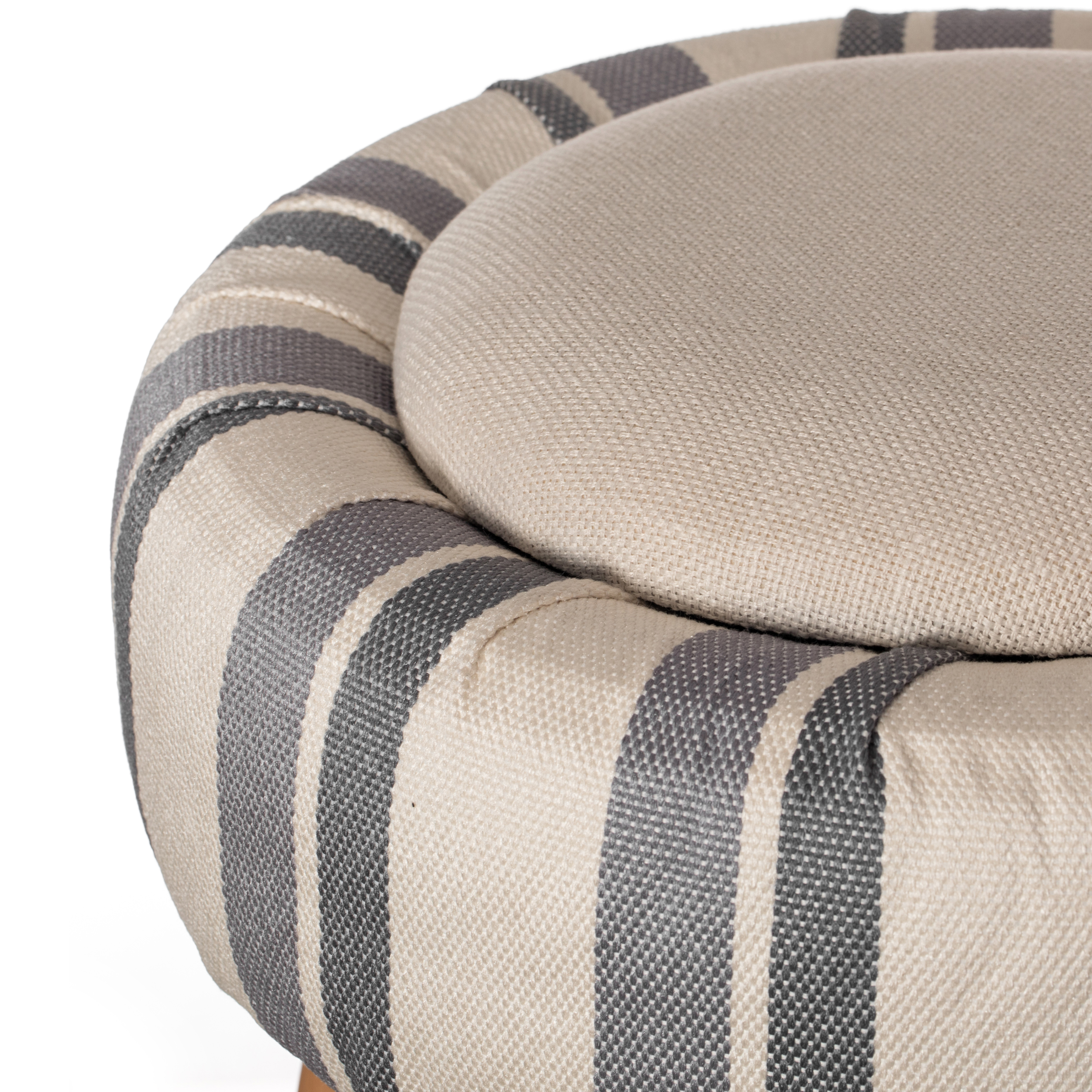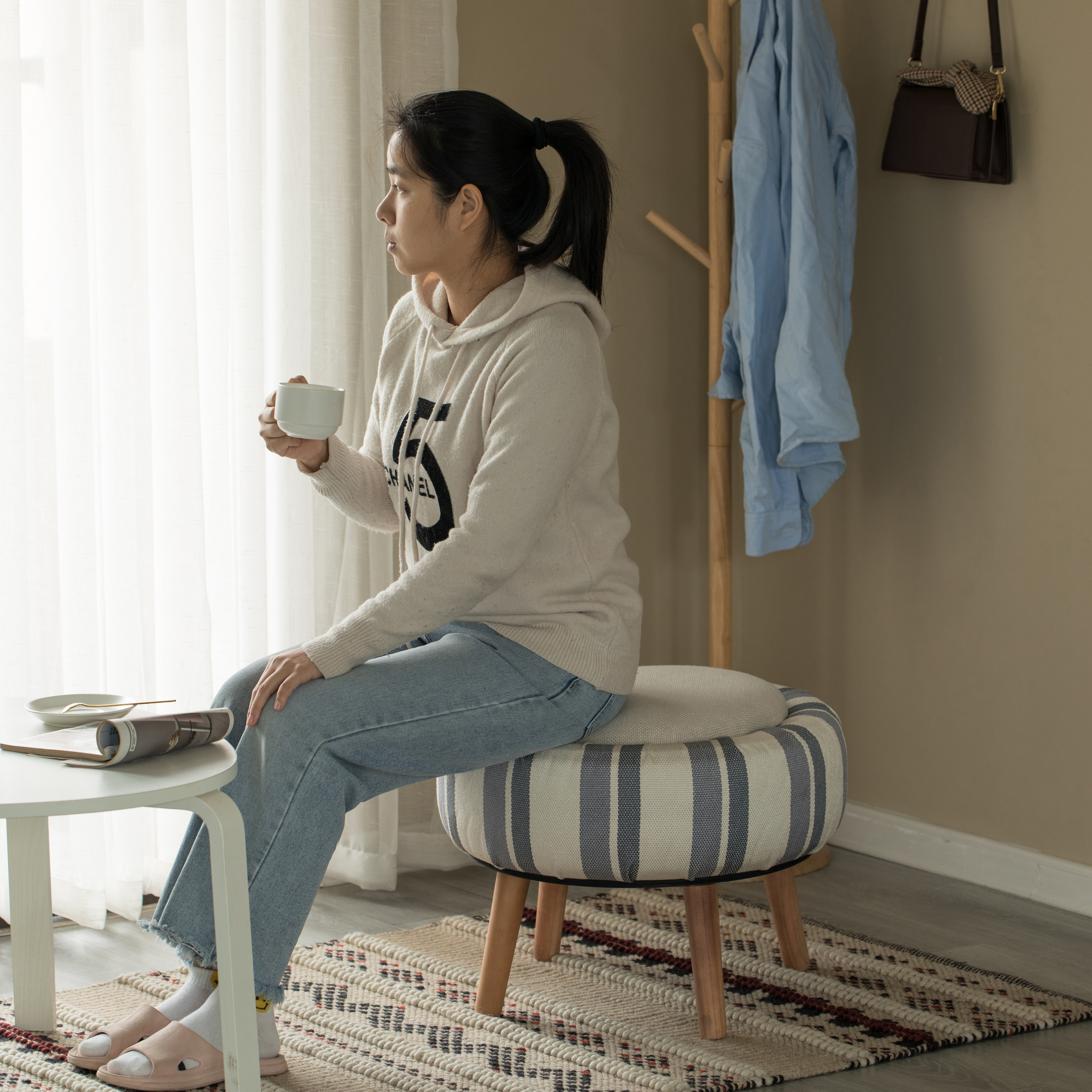 Home entrances and living rooms need practical and decorative furniture to make home feel more inviting. This storage ottoman invites decorative charm and practical functions wherever placed. This round shape stool serves as a seat, storage holder, and ottoman. Thick fabric on solid wooden legs makes it durable to use. Top seat opens up to reveal large interior area to store living room or bedroom items and soft cushion top makes it comfortable to use as a seat. This storage ottoman is what makes rooms look complete!
