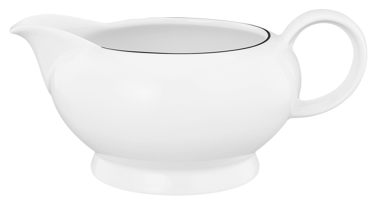 Sauciere LIDO von Seltmann Weiden in der Farbgebung Weiß und Schwarz wurde sorgfältig aus Porzellan hergestellt. Bald kann dieses geschmackvolle Accessoire schon Ihren Essbereich schmücken.