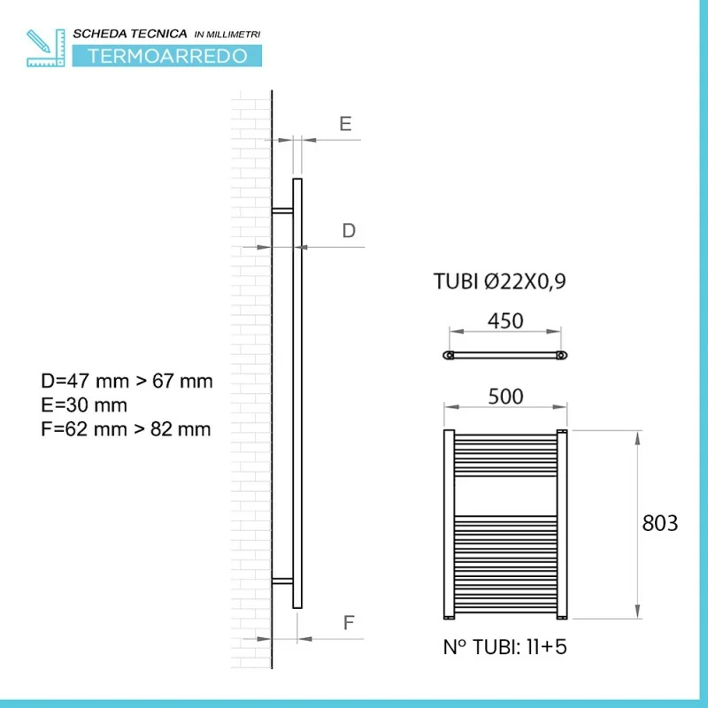 Termoarredo radiatore verticale bianco L 50x80 interasse 45 cm