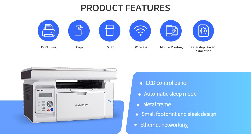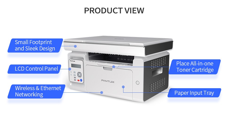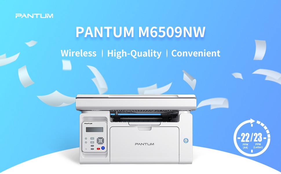 Pantum M6509NW Wireless Mono Multifunction Laser Printer (Print, Scan, Copy) Suitable for home users or small offices Works with Windows, Mac, Linux, Android and iOS Connectivity: Wi-Fi / USB / Ethernet