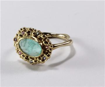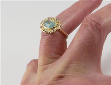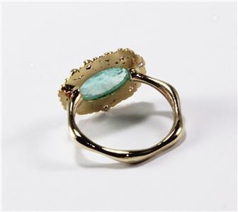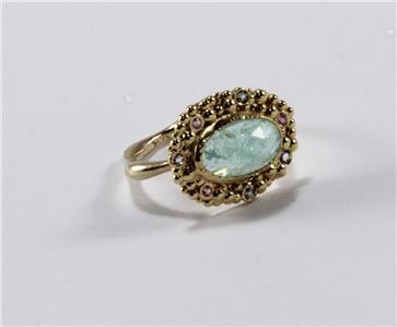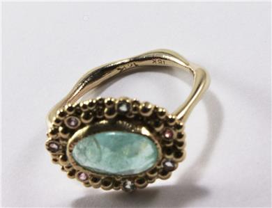 Custom made 18K/14K yellow gold with aquamarine center and mixed gemstone accent ring. The center natural aquamarine stone measures approximately 9.92mm x 5.5mm, very pretty stone. Top face measures 17.5mm x 14mm and item total weight is approximately 4.37 grams. It is marked "18k" and "14k" as shown. The top frame is tested 18k and the shank is tested 14k. Ring is in beautiful condition with some with some light signs of wear, see all photos for details, all photos are from actual item. Beautiful design and craftsmanship, it has a luminous romantic appearance to it which is extremely difficult to capture through camera. Item comes in a generic gift box as shown.