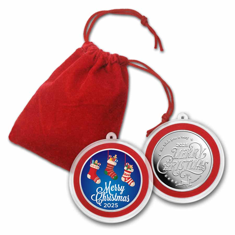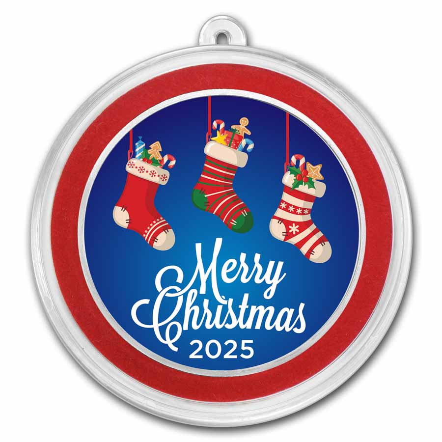 From Christmas to Hanukkah, with designs featuring everything from Santa to the frosty North Pole, APMEXclusive® colorized rounds make the perfect gift for any holiday collector. Pick up these unique designs while supplies last. Add this beautiful full-color 1 oz Christmas Stockings holiday round to your cart today!