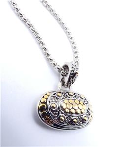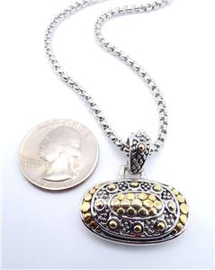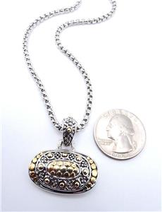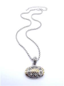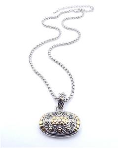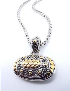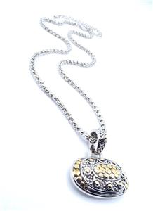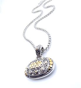 UNIQUE Designer BALINESE Silver Gold Dots Texture Oval Pendant 16" Cable Box Chain Necklace