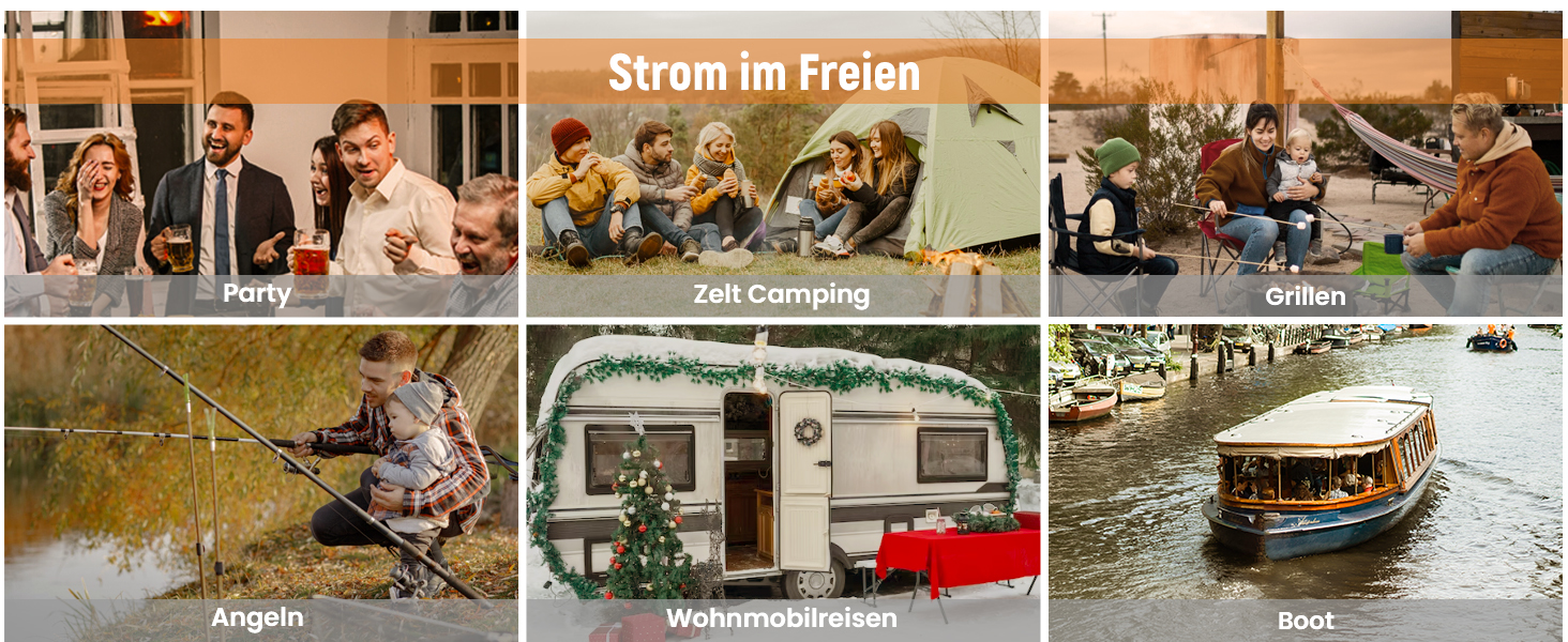 - Geeignet für Camping, Partys im Freien, Gartenhöfe, Hochzeiten im Freien, Reisen mit dem Wohnmobil, Baustellen, als Notstromversorgung bei Stromausfällen in der Familie bei extremen Wetterbedingungen usw. (Bitte in einer belüfteten Umgebung verwenden.)