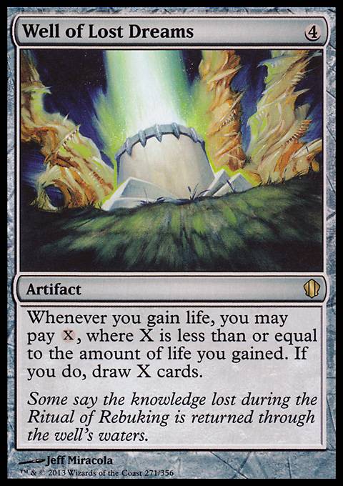 | | Name: | Well of Lost Dreams | | Set: | Commander 2013 | | Number: | 271 | | Condition: | Light Play | | Language: | English | | Variation: | Non-Foil | |