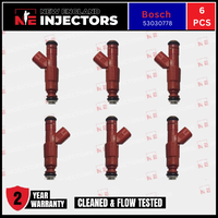 Remanufactured Bosch 0280156161 / 53030778 Fuel Injectors set (6) for 1987–1998 Jeep Cherokee, Grand Cherokee, Wrangler. Professionally rebuilt to OEM specs using only genuine OEM injectors. Includes fast shipping and a 2-year warranty.