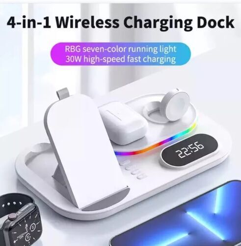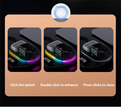 Multifunctional: This kind of device can be used as a charger for phone, headset and watch, and it also can be used as a RGB night light and alarm clock, meeting your different needs at a time.