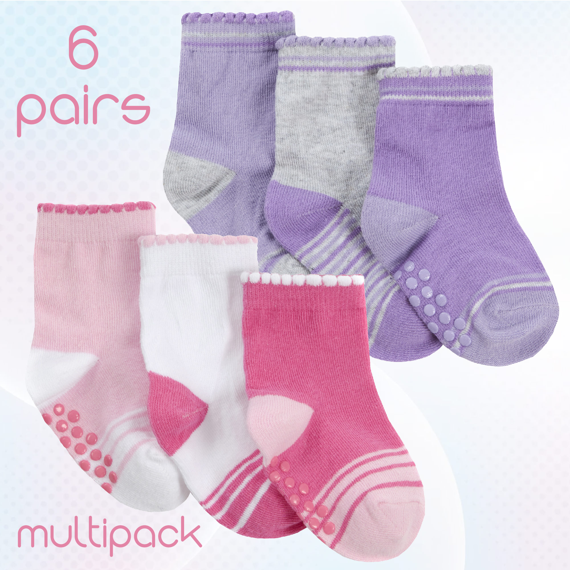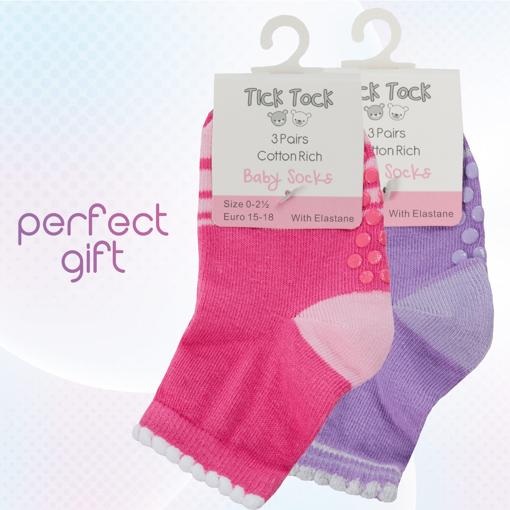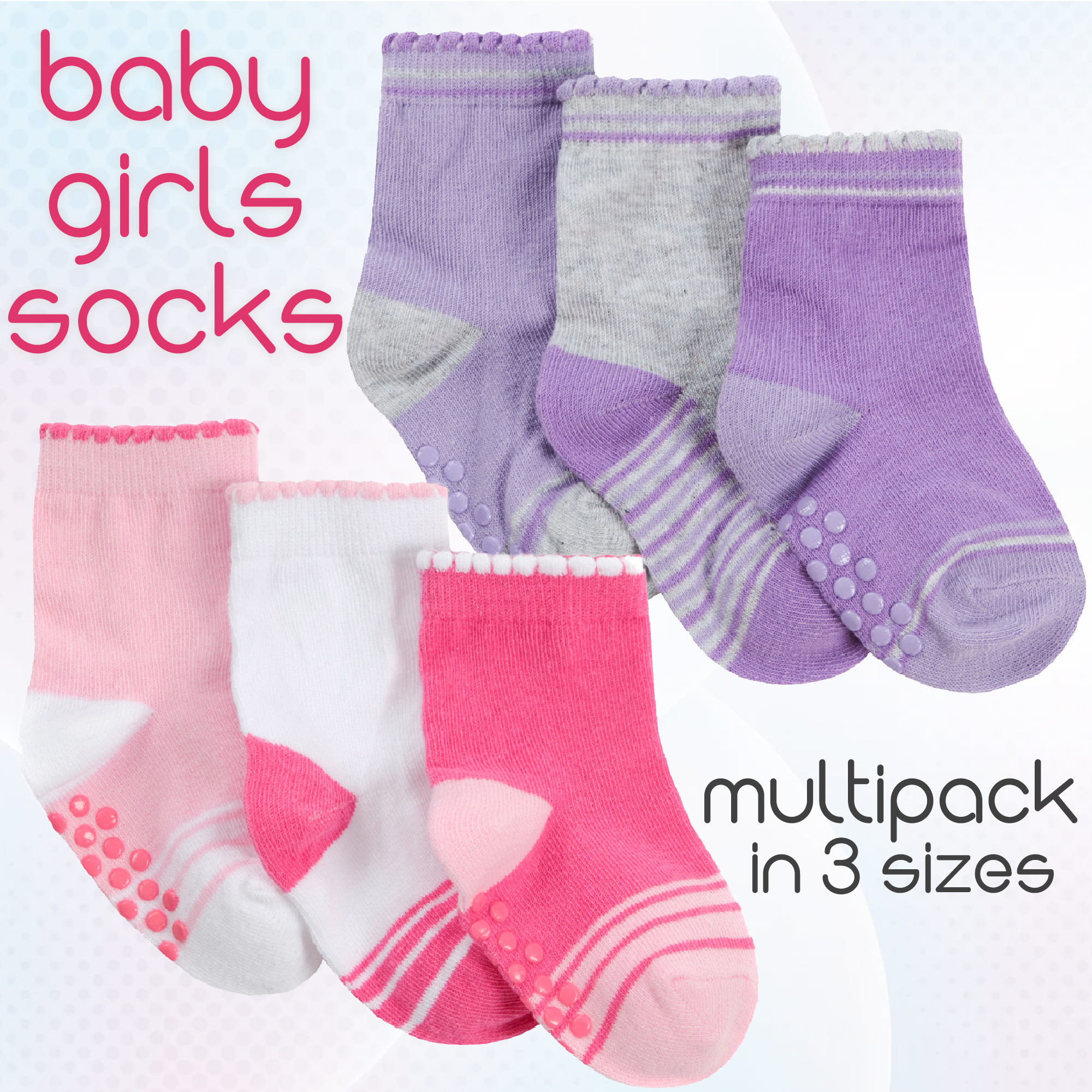 Newborn Baby Girls Socks Mid Calf Anti Slip Grip Multipack 3 6 Pairs 0-18 Months
