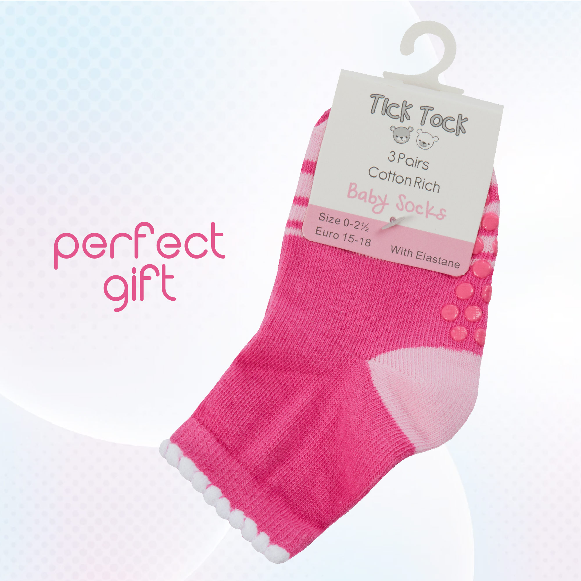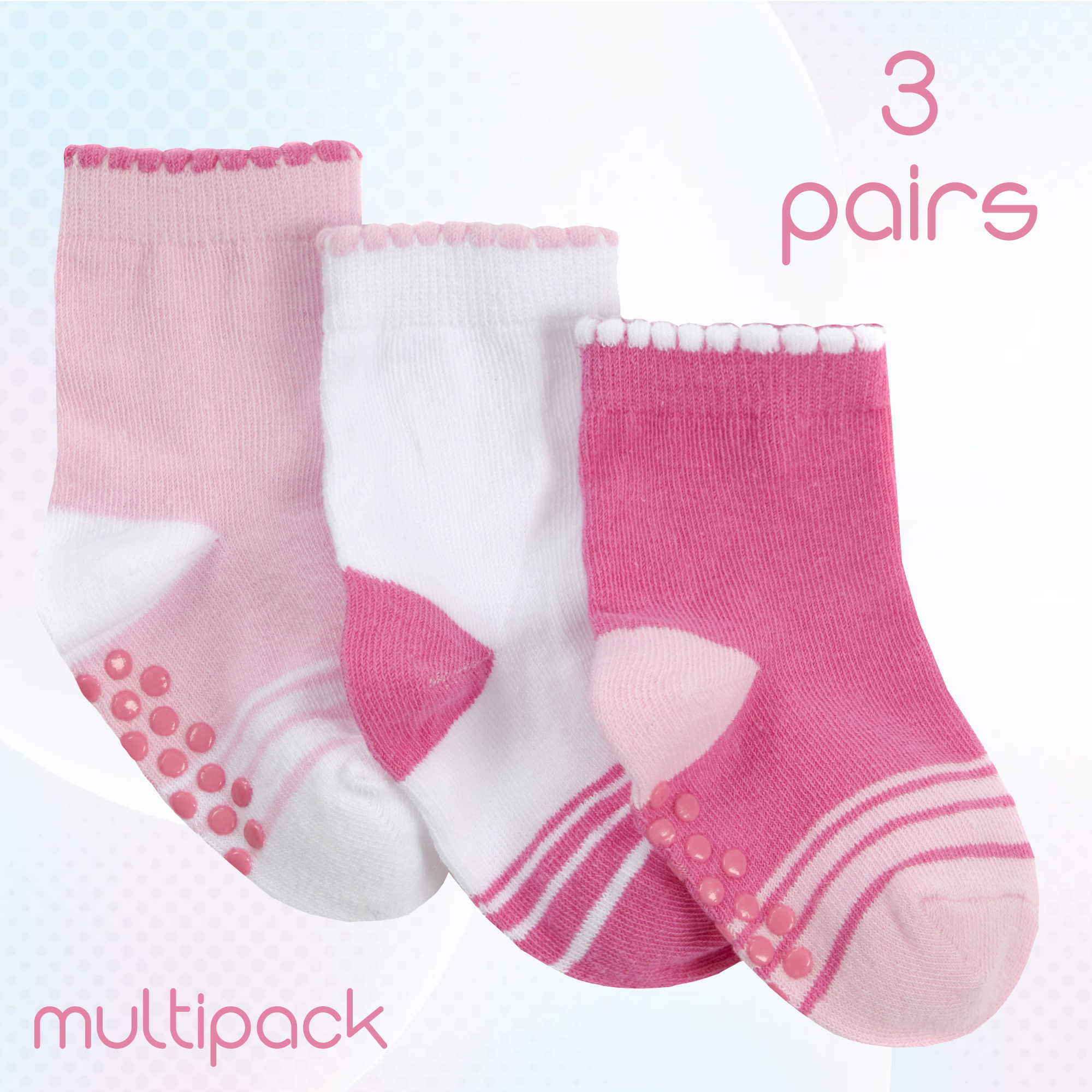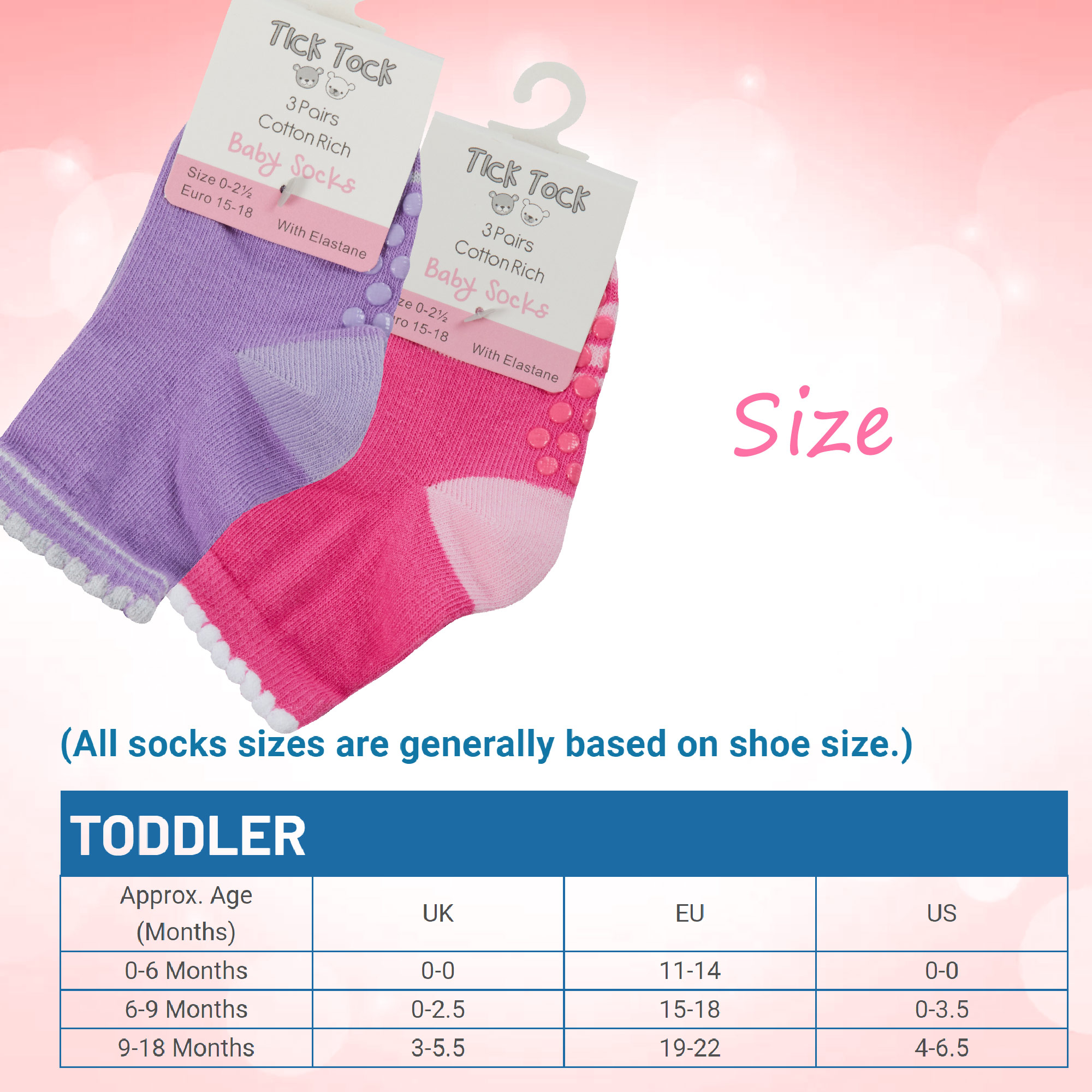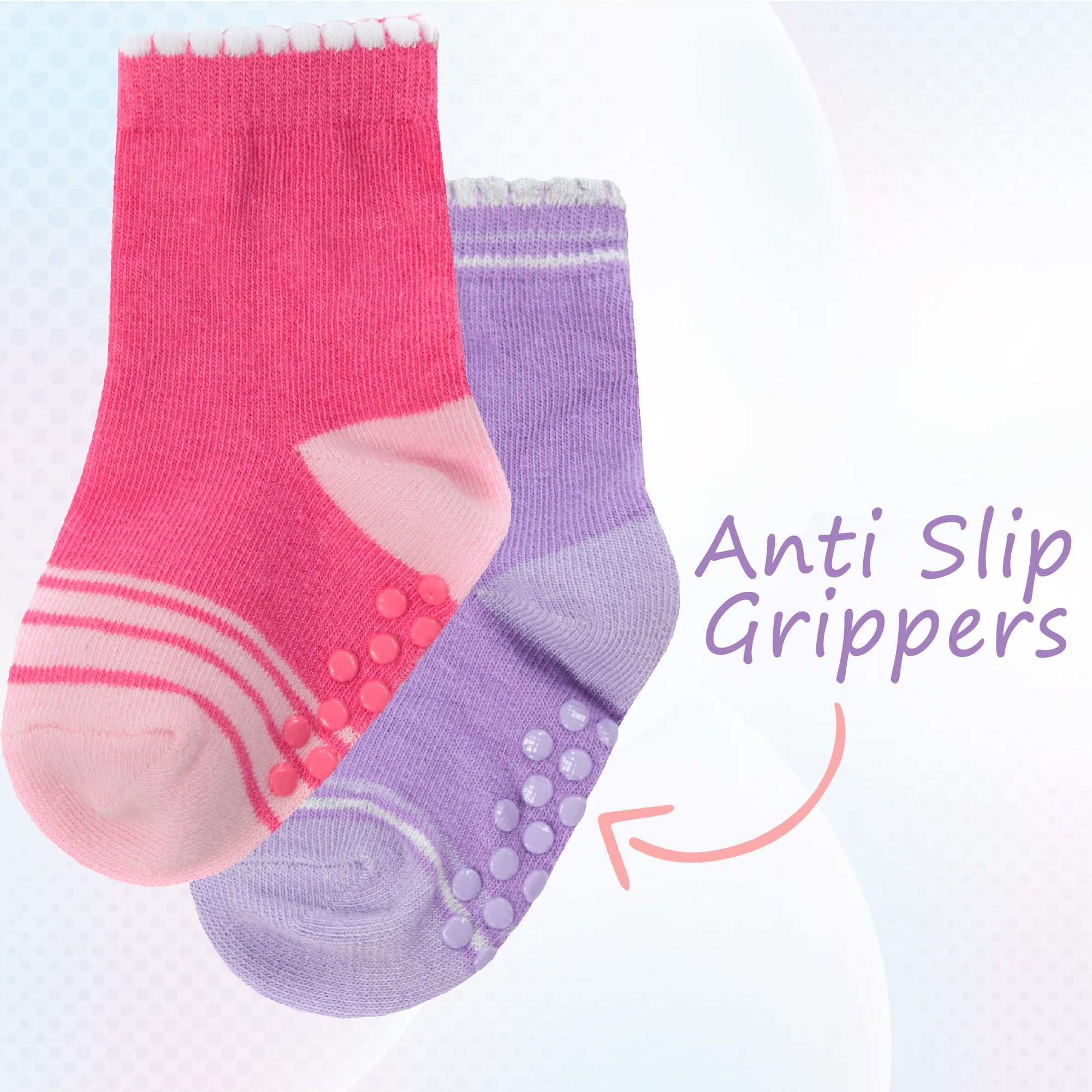 Newborn Baby Girls Socks Mid Calf Anti Slip Grip Multipack 3 6 Pairs 0-18 Months