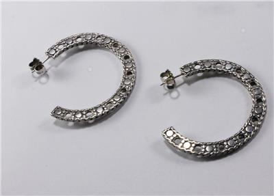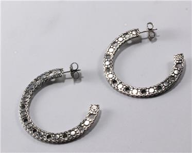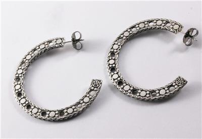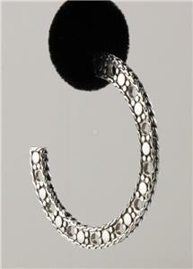 Authentic John Hardy 925 sterling silver dot flat hoop earrings. Measures approximately 1.95 inch from top to bottom (all measurements are from widest to widest). Item total weight is approximately 19.26g combined. It is properly hallmarked on both earrings as shown. Very good condition with some signs of wear, see all photos for details, all photos are from actual item. Comes in a generic box as shown.
