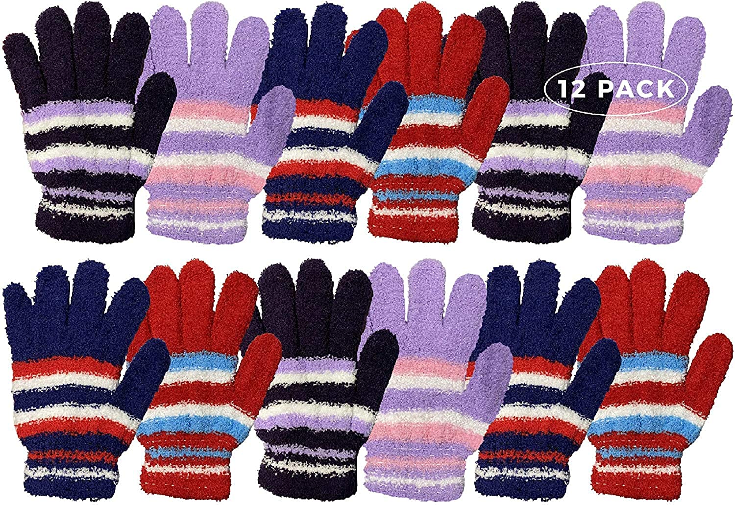 12 Pairs of Winter Gloves Mens Womens and Kids - Thermal Knit Stretchy Fuzzy Bulk Glove Colors (WOMENS STRIPE FUZZY) ![]() ![]() ![]() ![]() ![]() ![]() ![]() ![]() ![]() ![]() ![]() Product Description