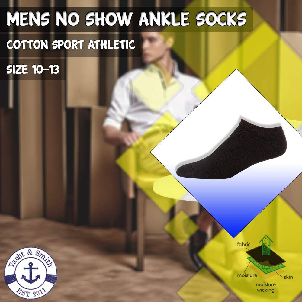 Yacht & Smith Mens Wholesale Bulk No Show Ankle Socks, Cotton Sport Athletic Socks - Size 10-13