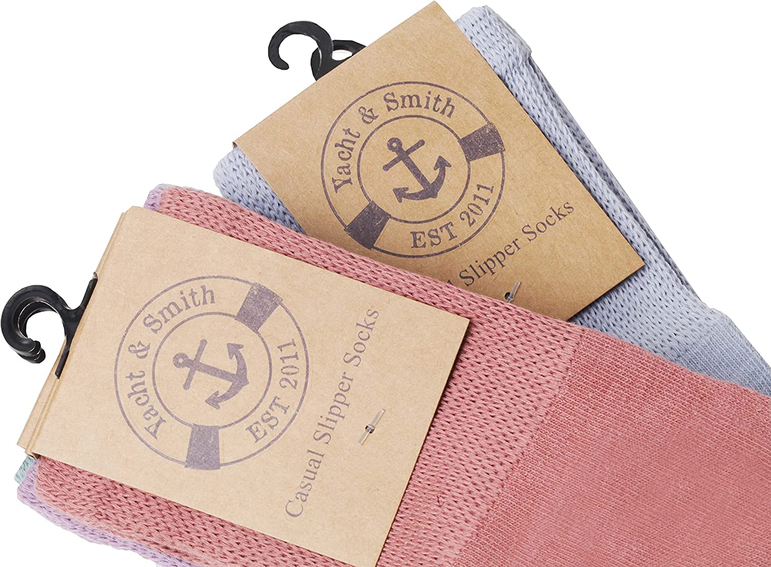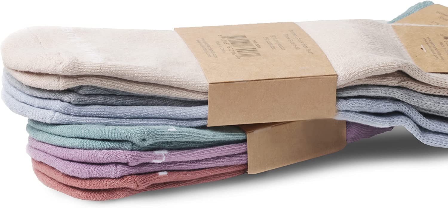 Benefits of Non Skid Slipper Gripper Socks - Non skid silicon grippers allow for safer walking on smooth surfaces such as wood or tile - Short crew length allows for easy take on and take off of socks -Non binding loose fitting top promotes better circulation - especially those who are diabetic, have neuropathy, or edema - Better quality than standard issue hospital socks. Great gift item for loved one in nursing home or medical facility The socks feature more rubber silicon grippers than our competitors. We ensure that the grippy soles do not come off in the wash. Purchase bulk no skid slipper socks in wholesale quantities for volume savings. Yacht and Smith stands behind the quality of our socks.