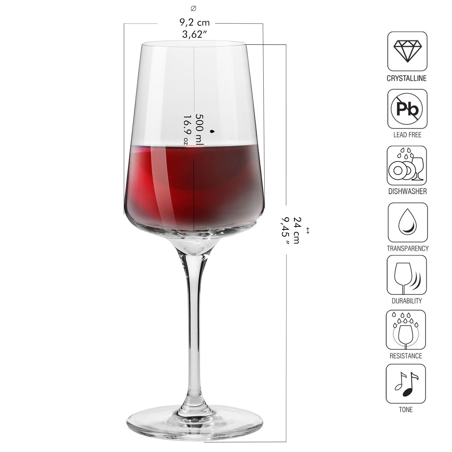 Gläser für Rotwein Krosno INFINITY – Trocken für Wild, halbtrocken für rotes Fleisch, halbsüß oder süß für Desserts, ein Schluck zur besseren Verdauung und für den Schlaf – unsere Gläser ermöglichen es dir, den Geschmack und das Aroma jeder Weinsorte zu schätzen. Egal, ob du dein Service für eine wichtige Feier vervollständigst oder dich zu Hause mit einer Flasche deines Lieblingsweins entspannen möchtest, das Glas aus der INFINITY-Kollektion garantiert eine Premium-Verkostung.