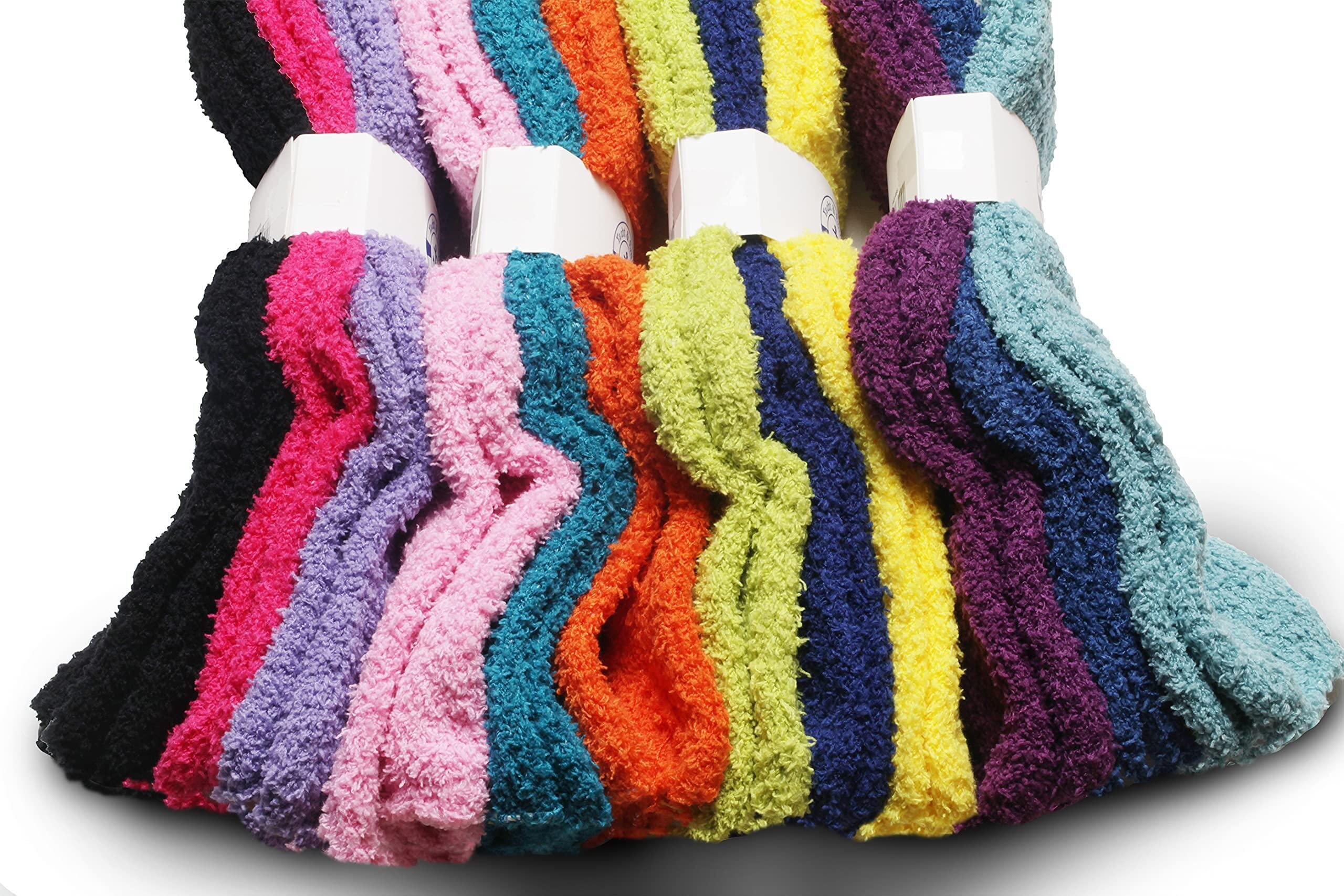 Winter weather calls for cozy comfortable socks. What better way to start the season than with a variety of warm fuzzy socks. Made of butter soft polyester and has the perfect amount of stretch.Bright fun colors look super cute and keep your feet toasty and warm . Great for lounging around the house or walking around the dorm. Try wearing them with your favorite winter boots for extra warmth.