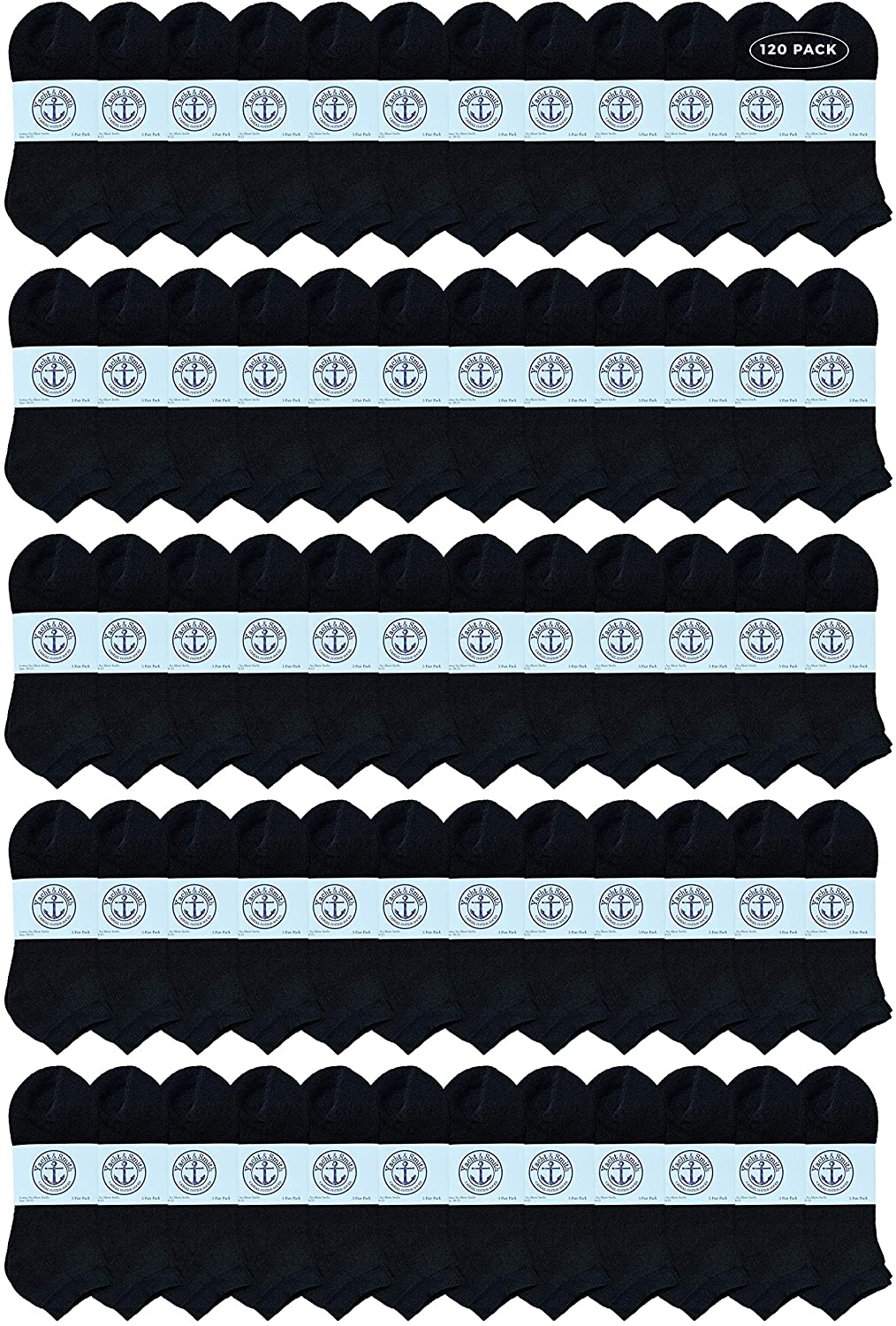 SOCKS'NBULK Mens Cotton No Show Socks, Soft Sports Socks In Bulk, King Size 10-13 (Black, 120)