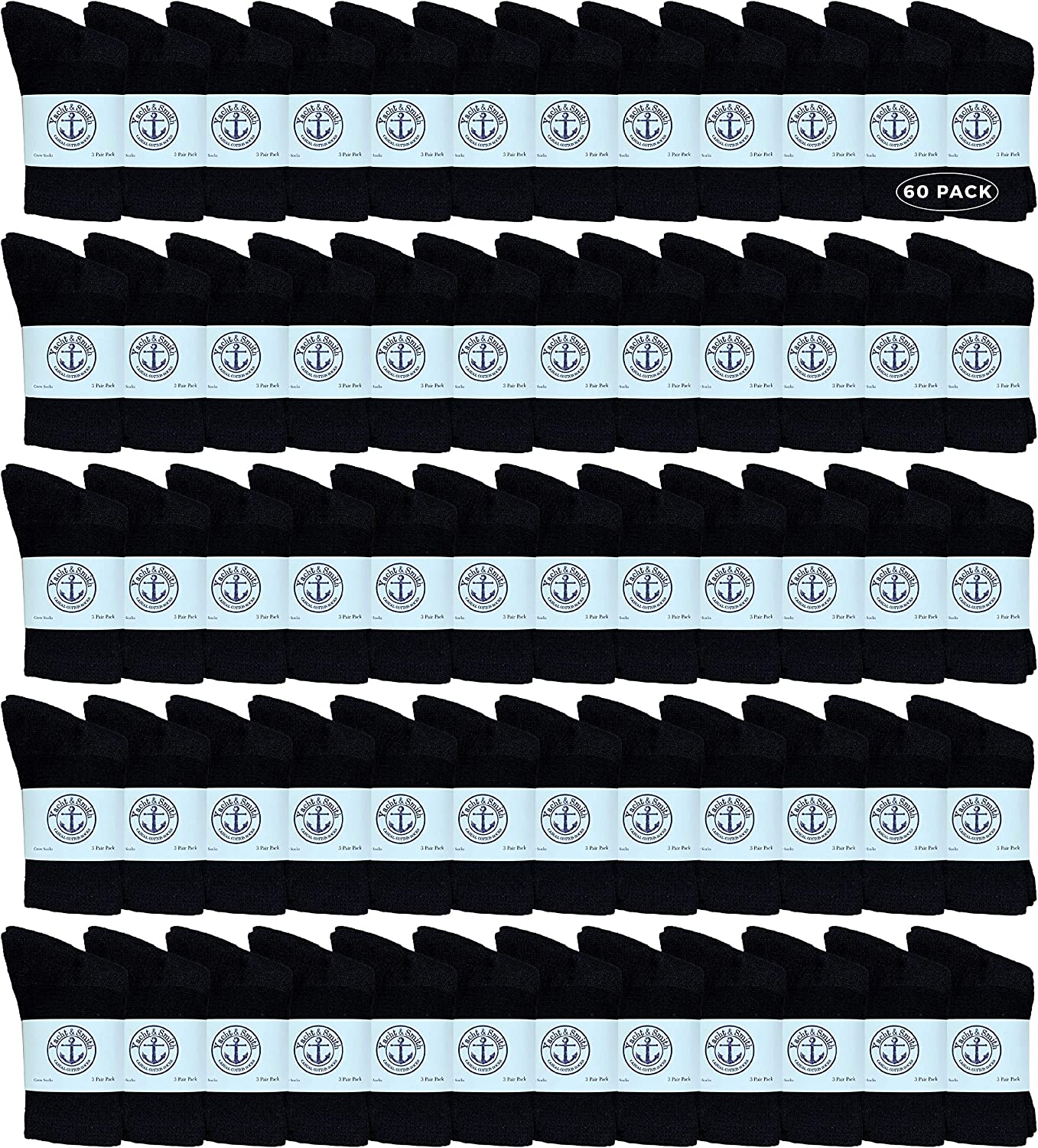 • 60 PAIRS OF KIDS BLACK WHOLESALE BULK CREW SOCKS: Purchasing these socks at heavy discounted prices is a great way to save on budget. Planning a event or buying for a cause becomes simplified and cost effective. Purchase a variety of pack sizes, colors and sizes for Men Woman and Children at the lowest wholesale price.