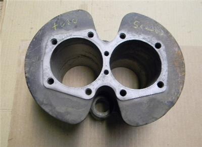 Used cylinder for a Triumph 750 twin. Currently at +020. Spigot on the bottom of one cylinder is cracked. Might be able to braze it and bore to the next oversize but probably should be sleeved.