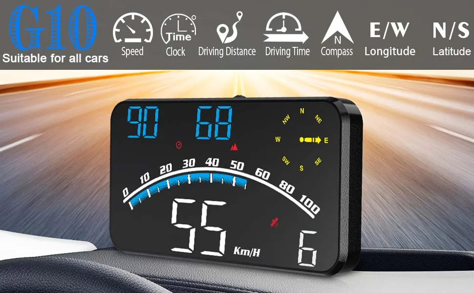 1.Works for All Vehicles – Unlike other car head-up displays, this HUD is GPS+BeiDou dual-mode chip, so you don't need to worry about compatibility issues and latency problems. This GPS Speedometer is compatible with all vehicles worldwide and can display speed MPH, travel time, mileage, time, direction, etc. at the same time with fast refresh speed and no delay.