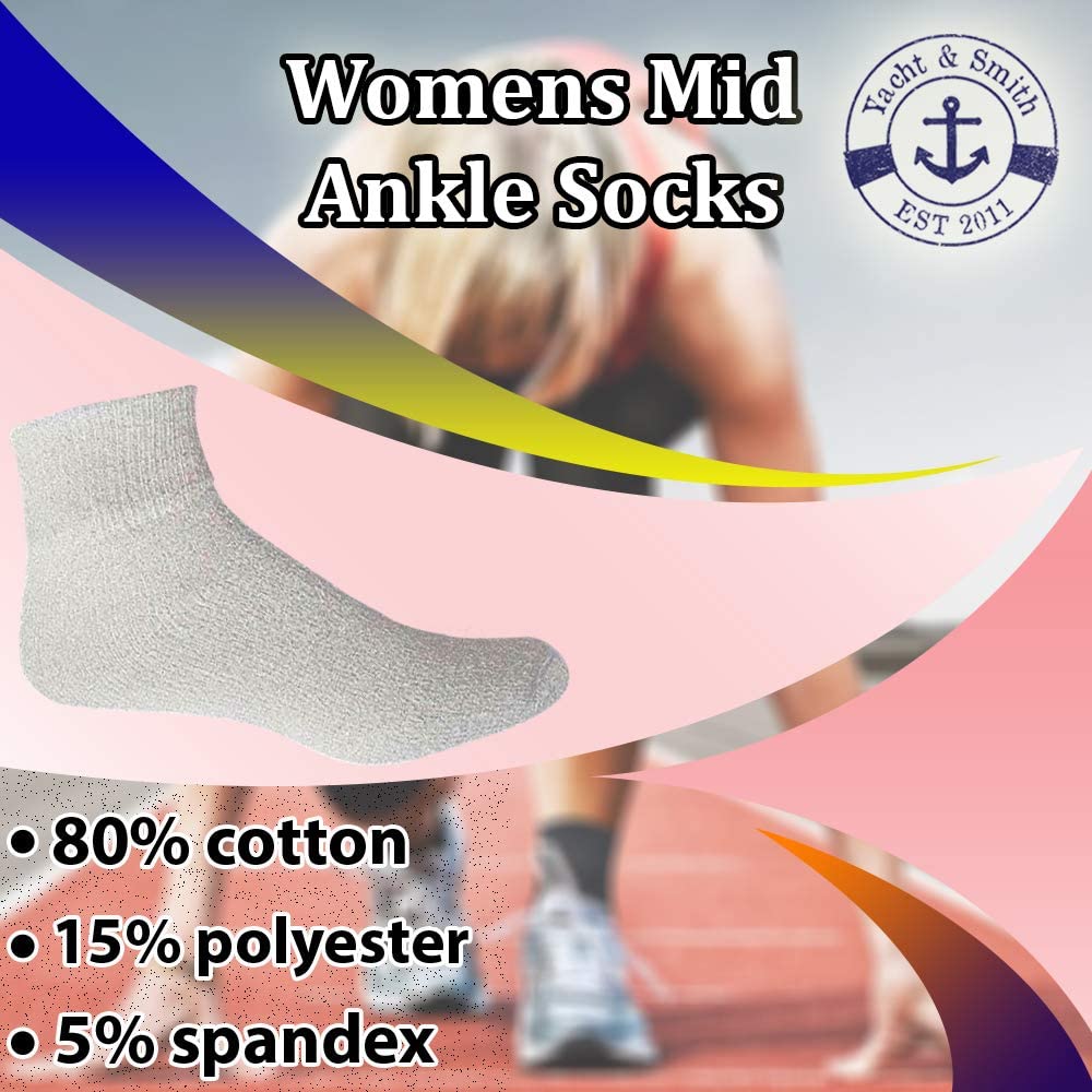 Yacht & Smith Wholesale Bulk Womens Mid Ankle Socks, Cotton Sport Athletic Socks - Size 9-19