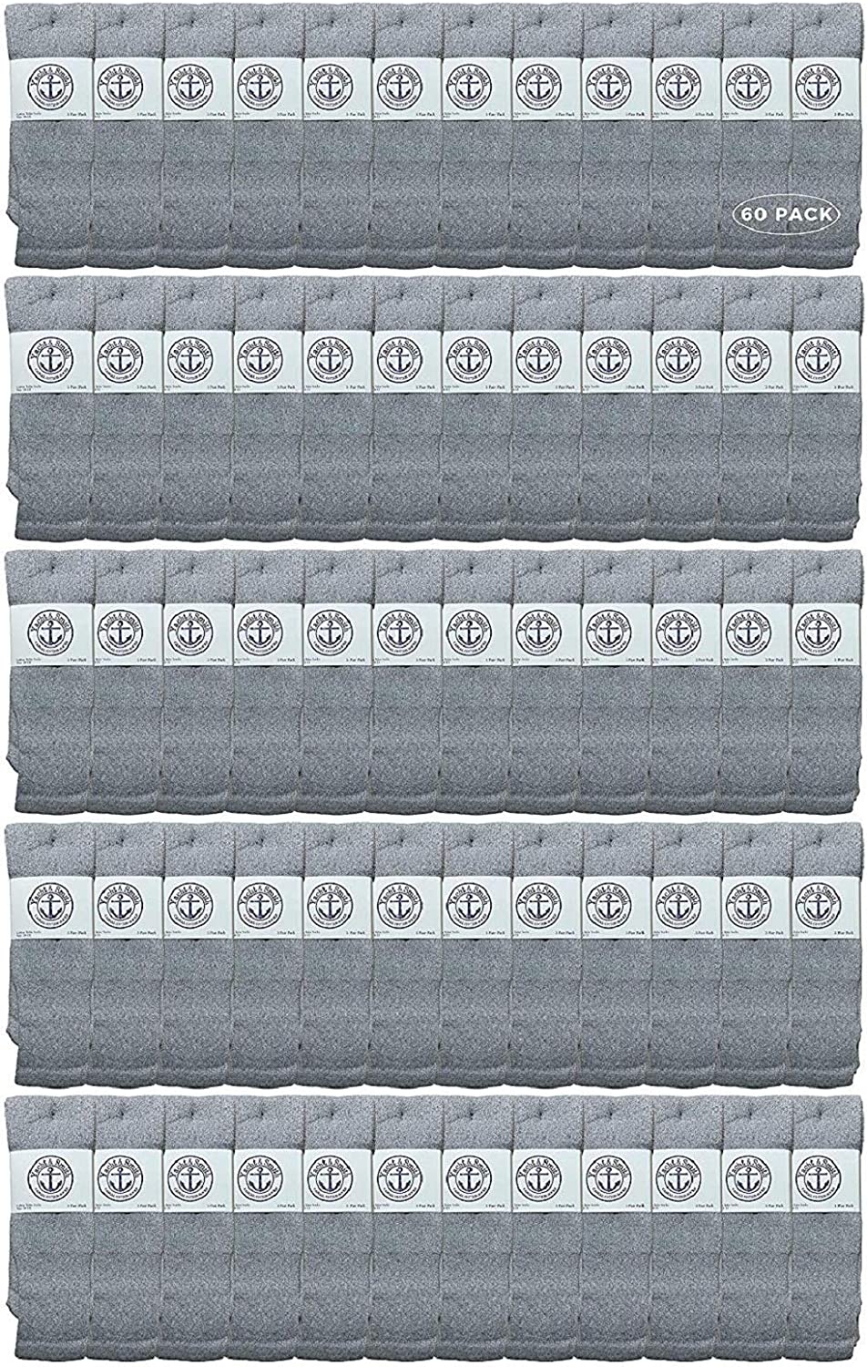 • 60 PAIRS OF MENS GRAY COTTON TUBE SOCKS: Get tube socks in bulk at wholesale value for events, schools, camps, or even for donating to homeless shelters. Bulk packs of classic casual tube socks for men is a staple in every mans wardrobe.