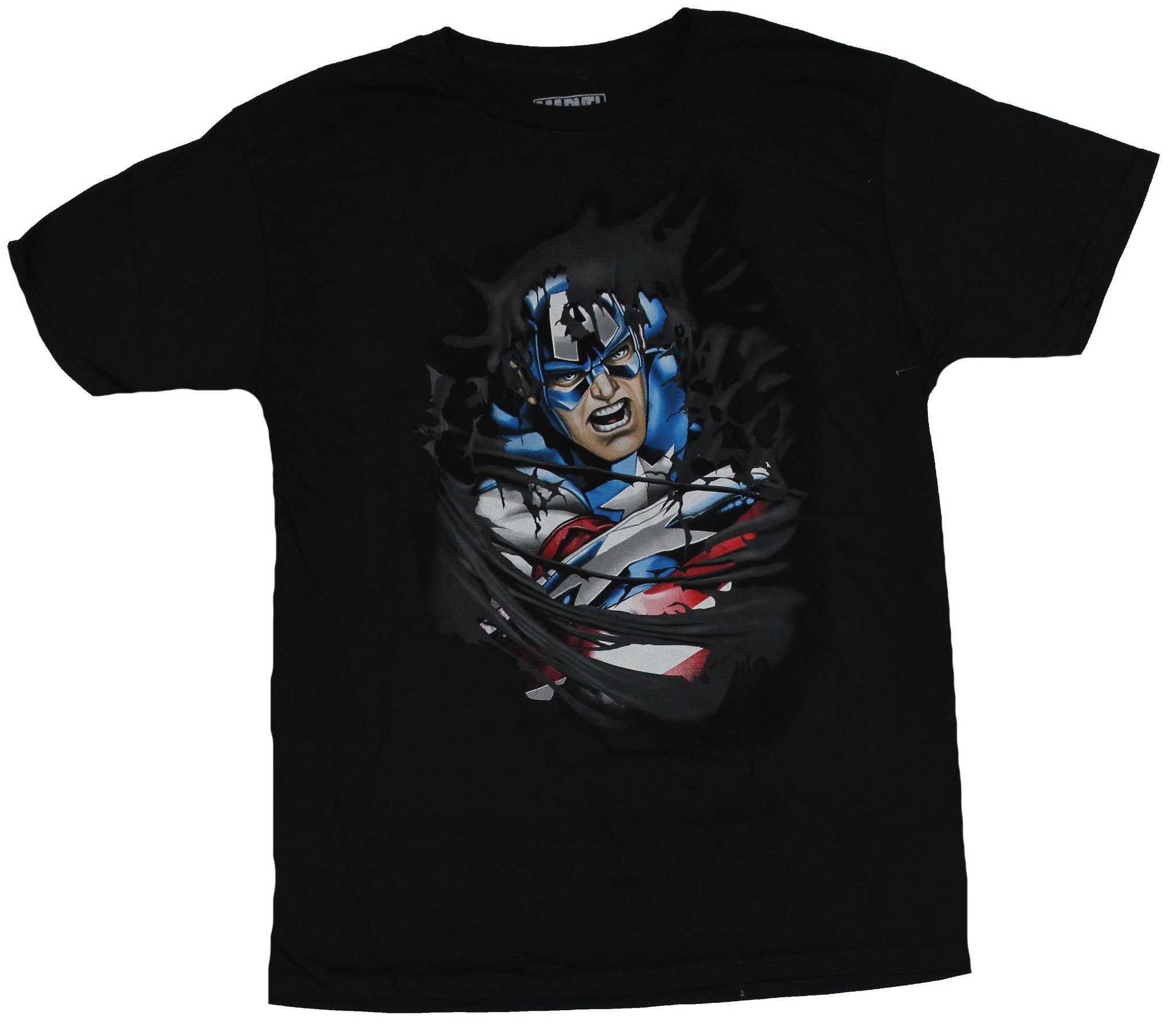 This black 100% cotton tee is perfect for fans of captain amercia.