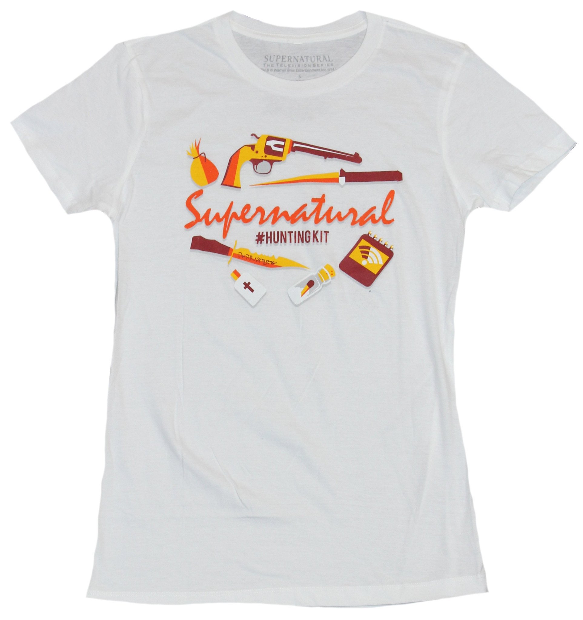 Supernatural Girls Juniors T-Shirt - Hunting Kit Collection Pics Under Logo