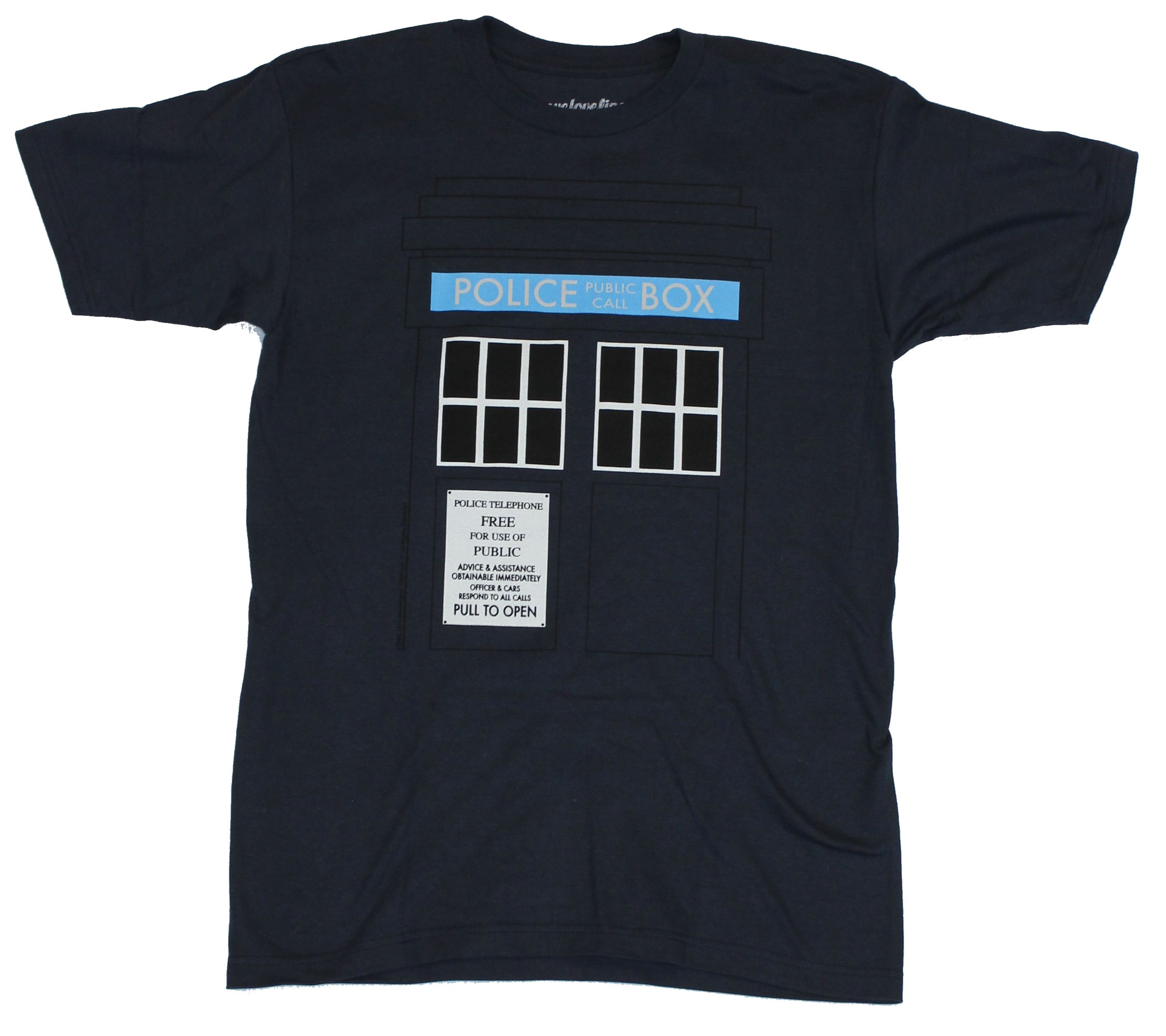 Doctor Who Adult New T-Shirt - Giant Police Call Public Box 2 Sided Pic