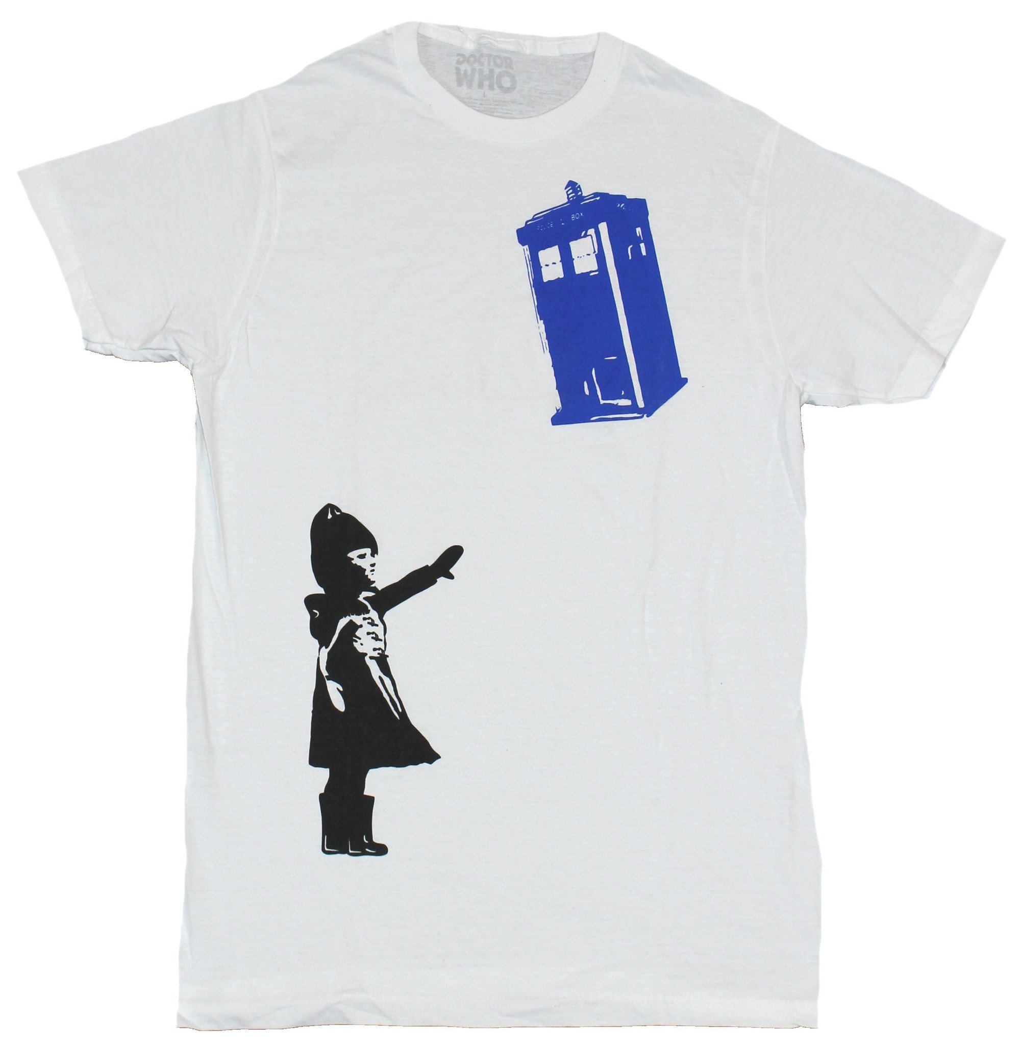 Doctor Who Adult New T-Shirt - Floating Public Call Box Graffiti Style