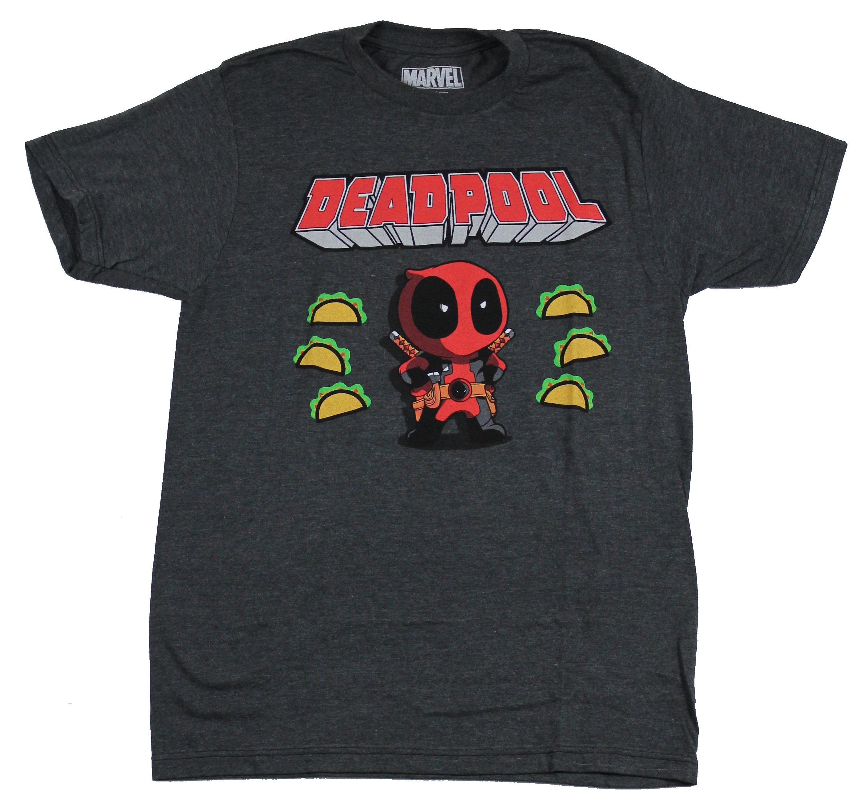 Deadpool Marvel Adult New T-Shirt - Chibi Style Deadpool Surrounded by Tacos