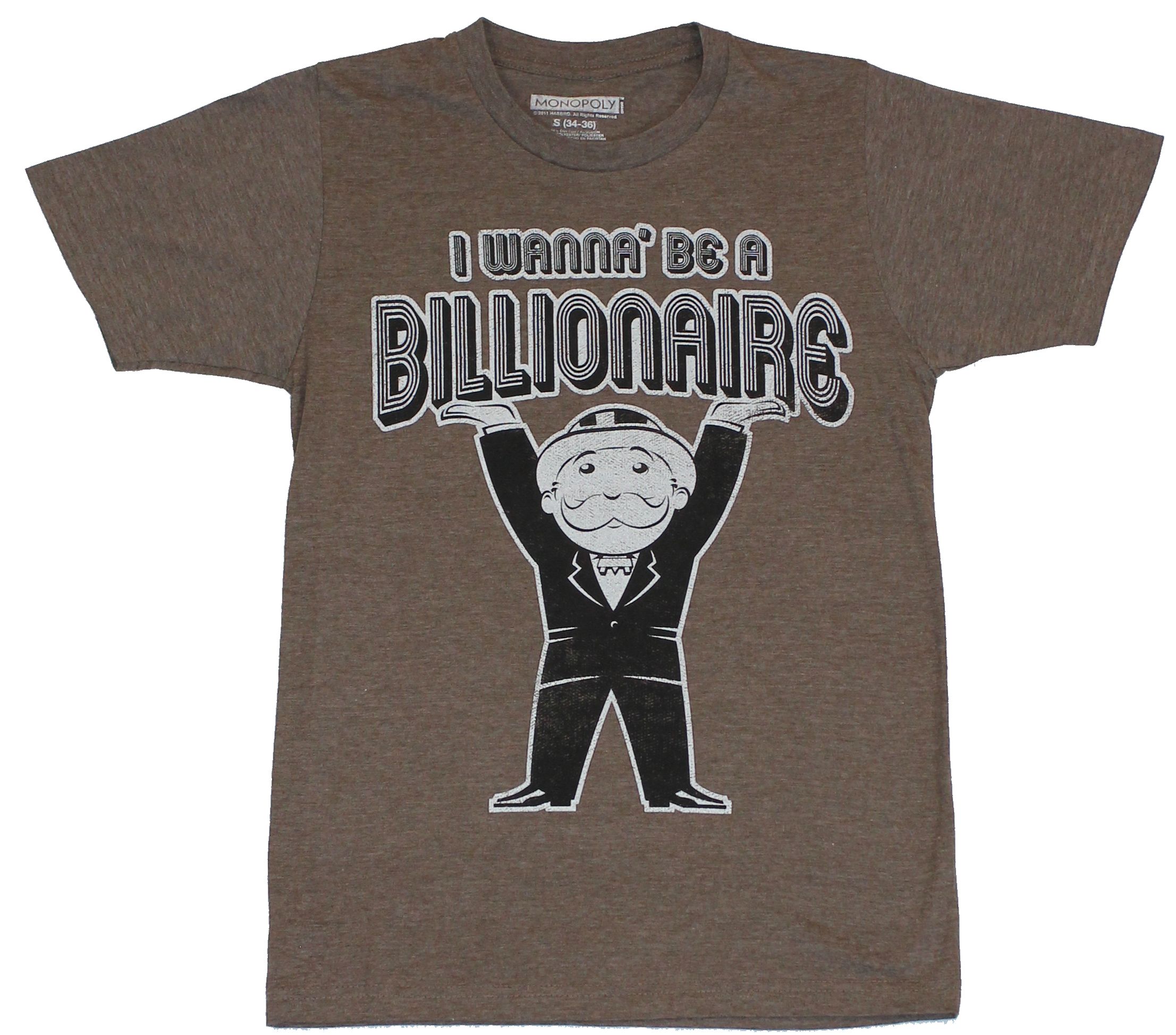 Monopoly Adult New T-Shirt - I Wanna Be A Billionaire!Pennybags Pic