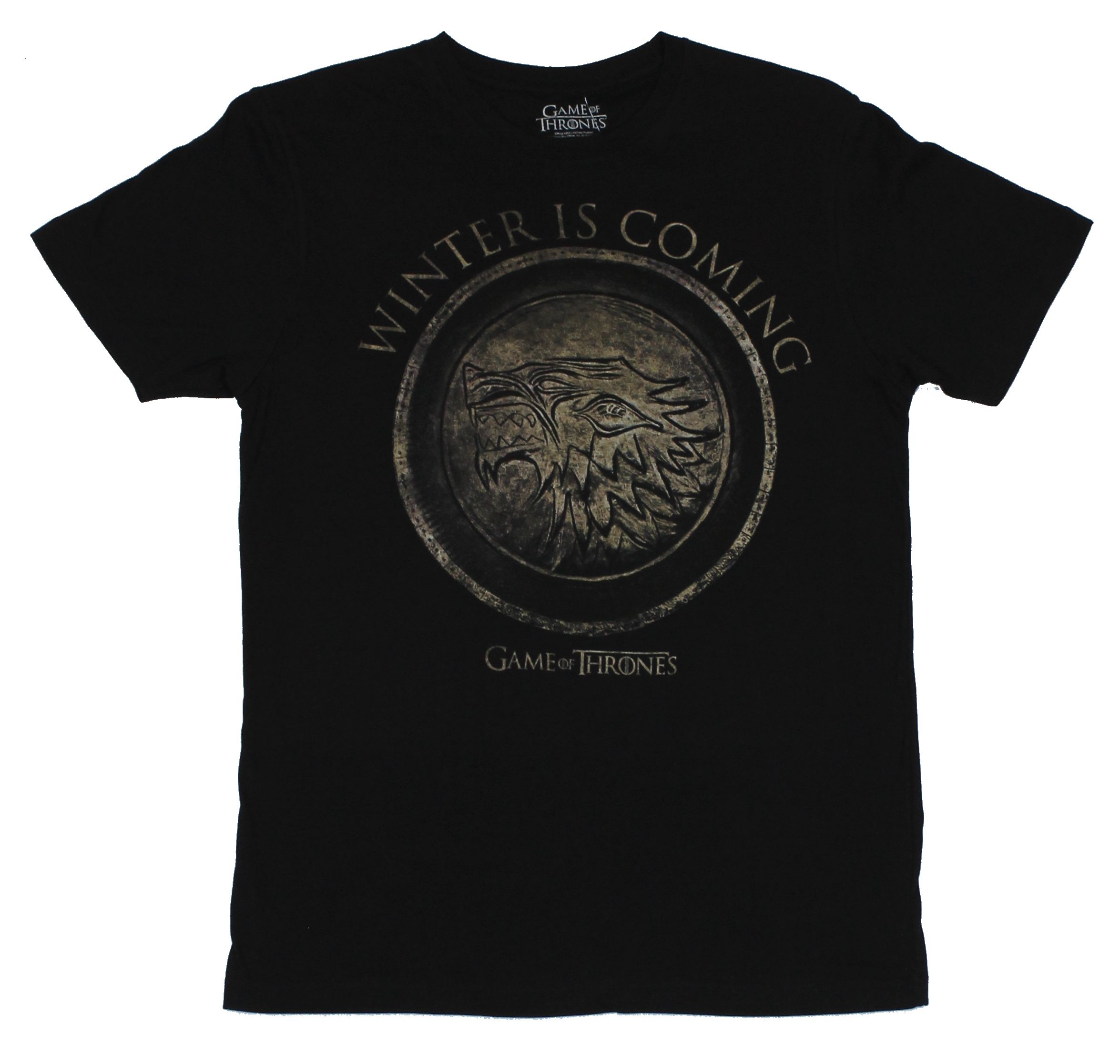 Game of Thrones Mens T-Shirt - Winter is Coming Stamped Stark Wolf Image