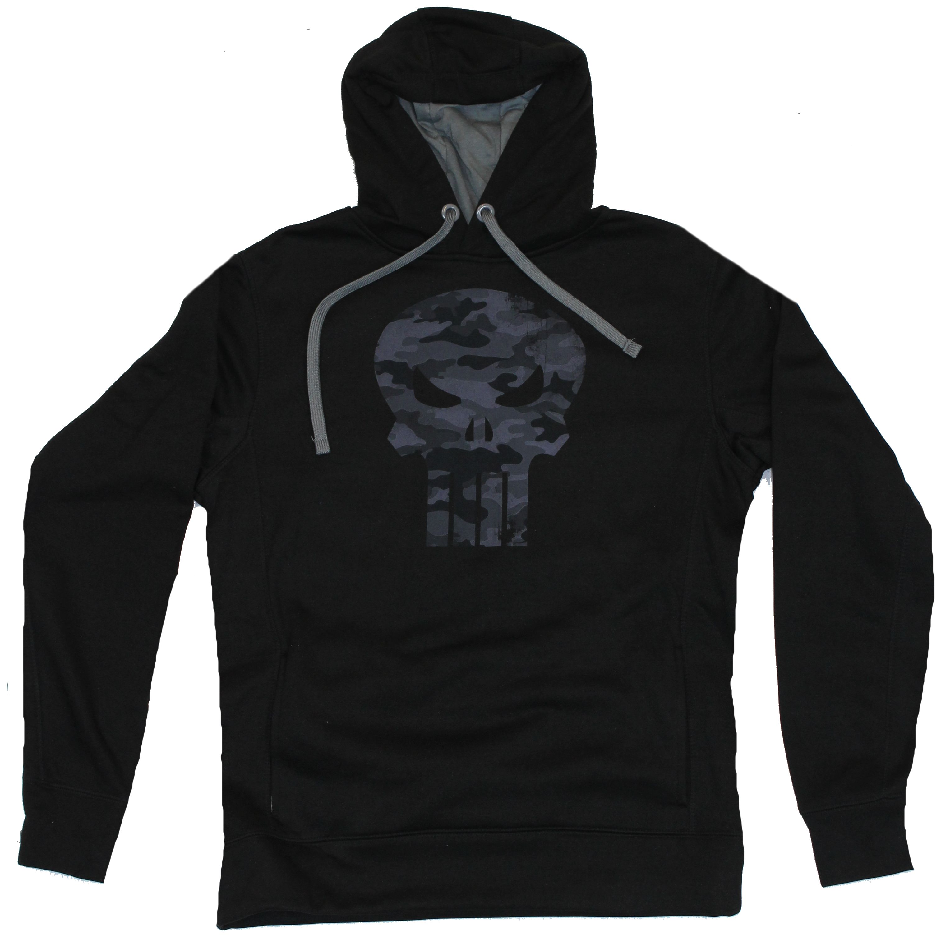 Punisher Mens Hoodie Sweatshirt - Classic Punisher Skull Logo Fillled Gray Camo