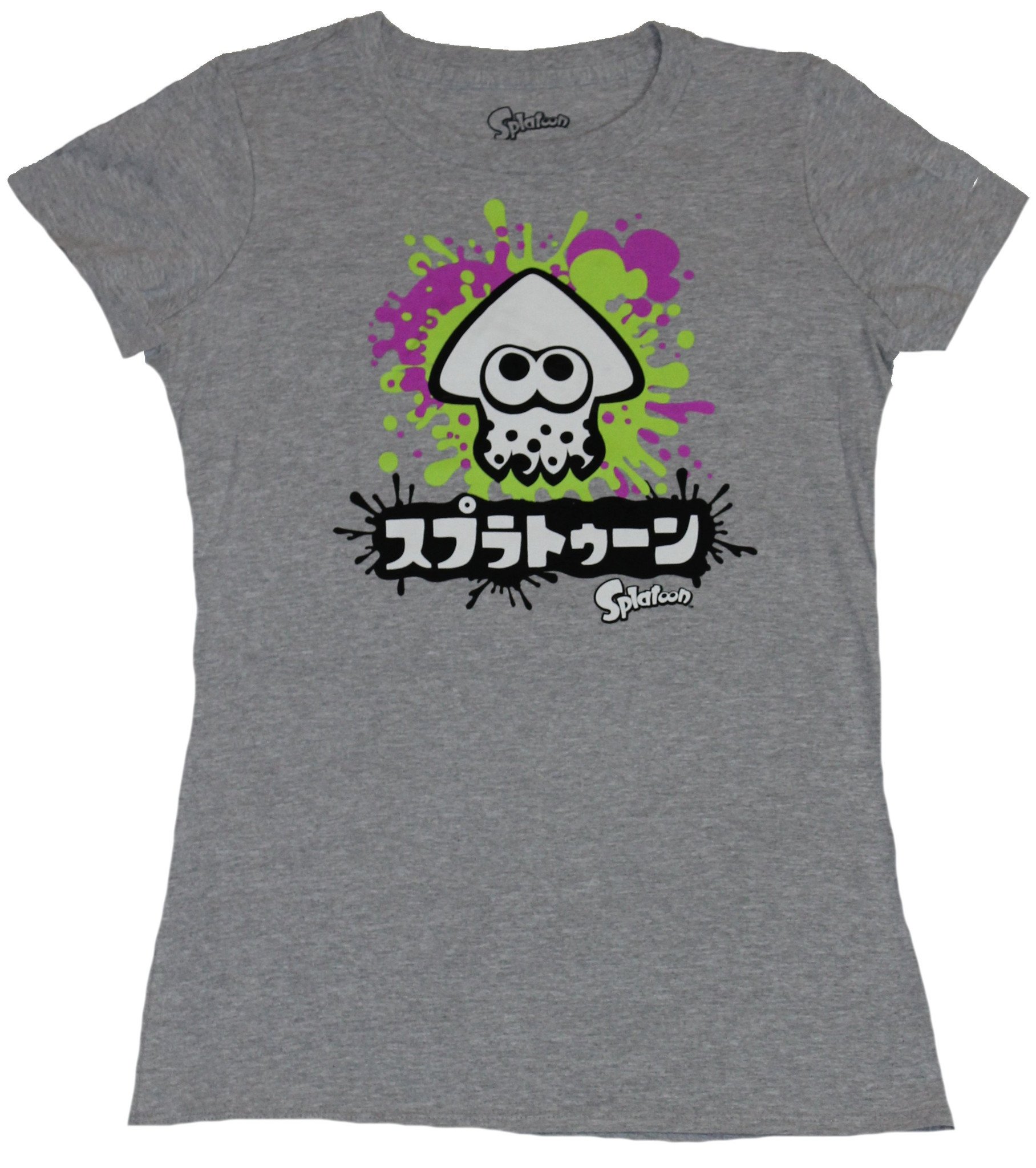 Splatoon Girls Juniors T-Shirt - Splattered Squid Over Japanese Characters