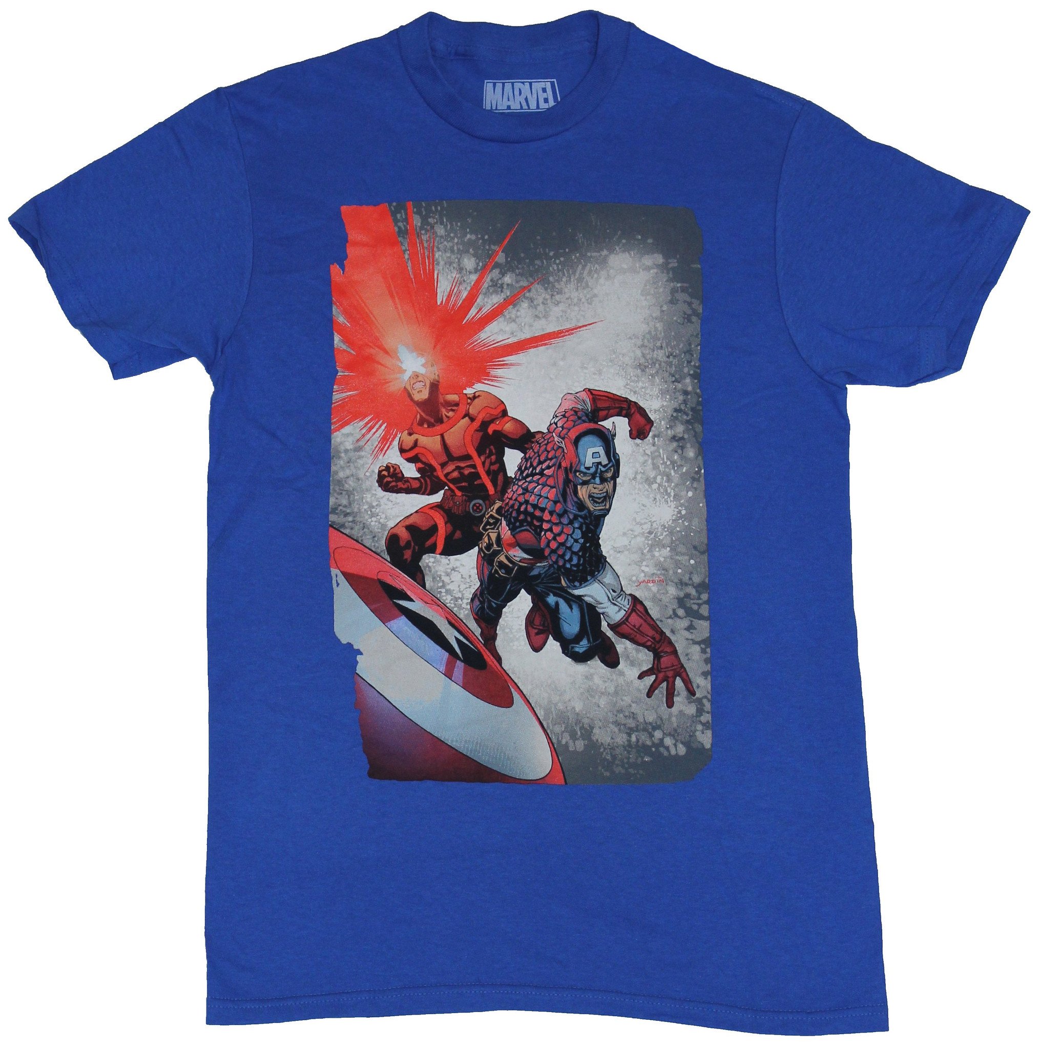 Marvel Comics Mens T-Shirt - Captain America & Cyclops in Battle Action Image