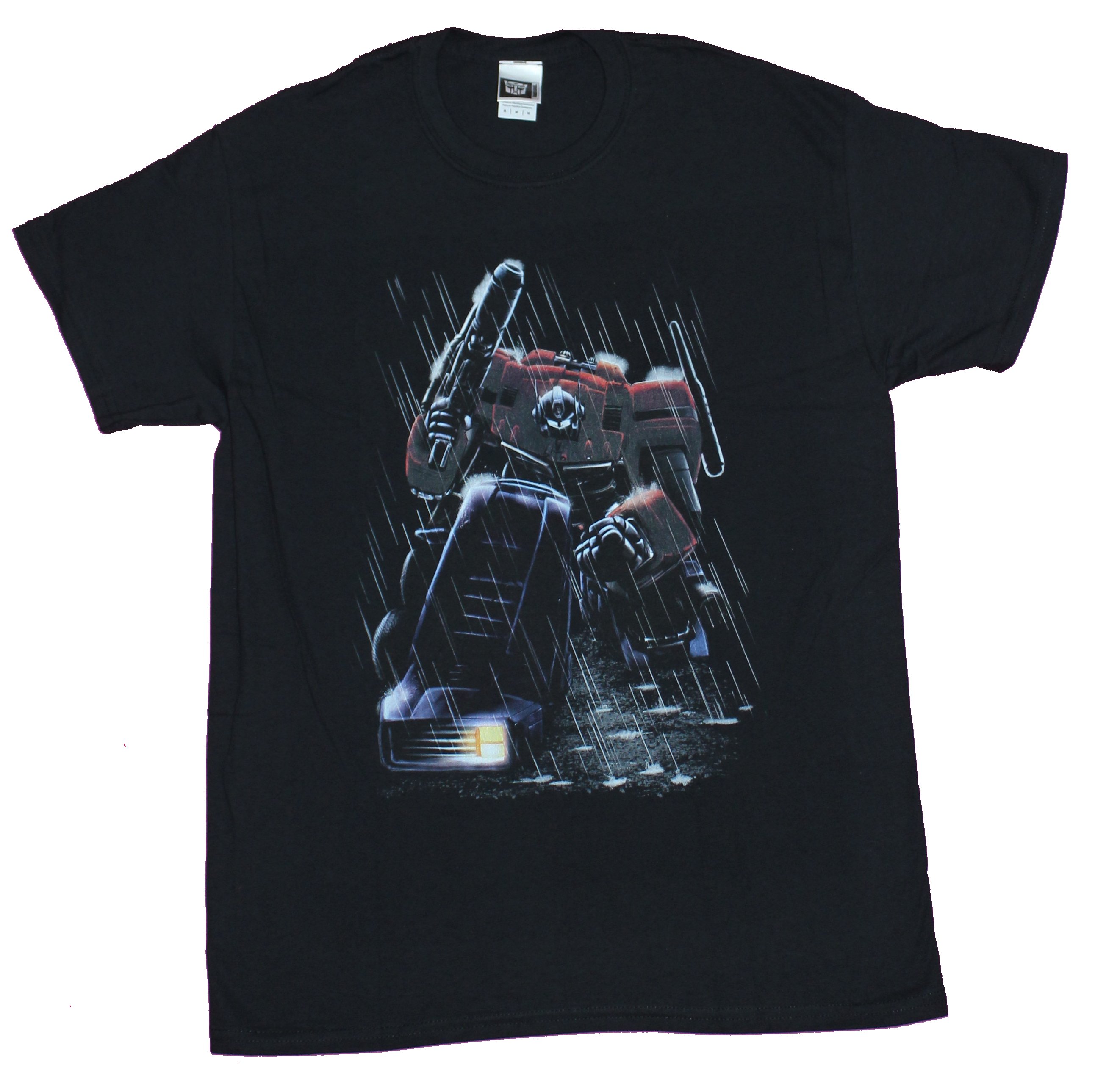 Transformers Adult New T-Shirt - Optimus Prime Battling in the Rain Pic