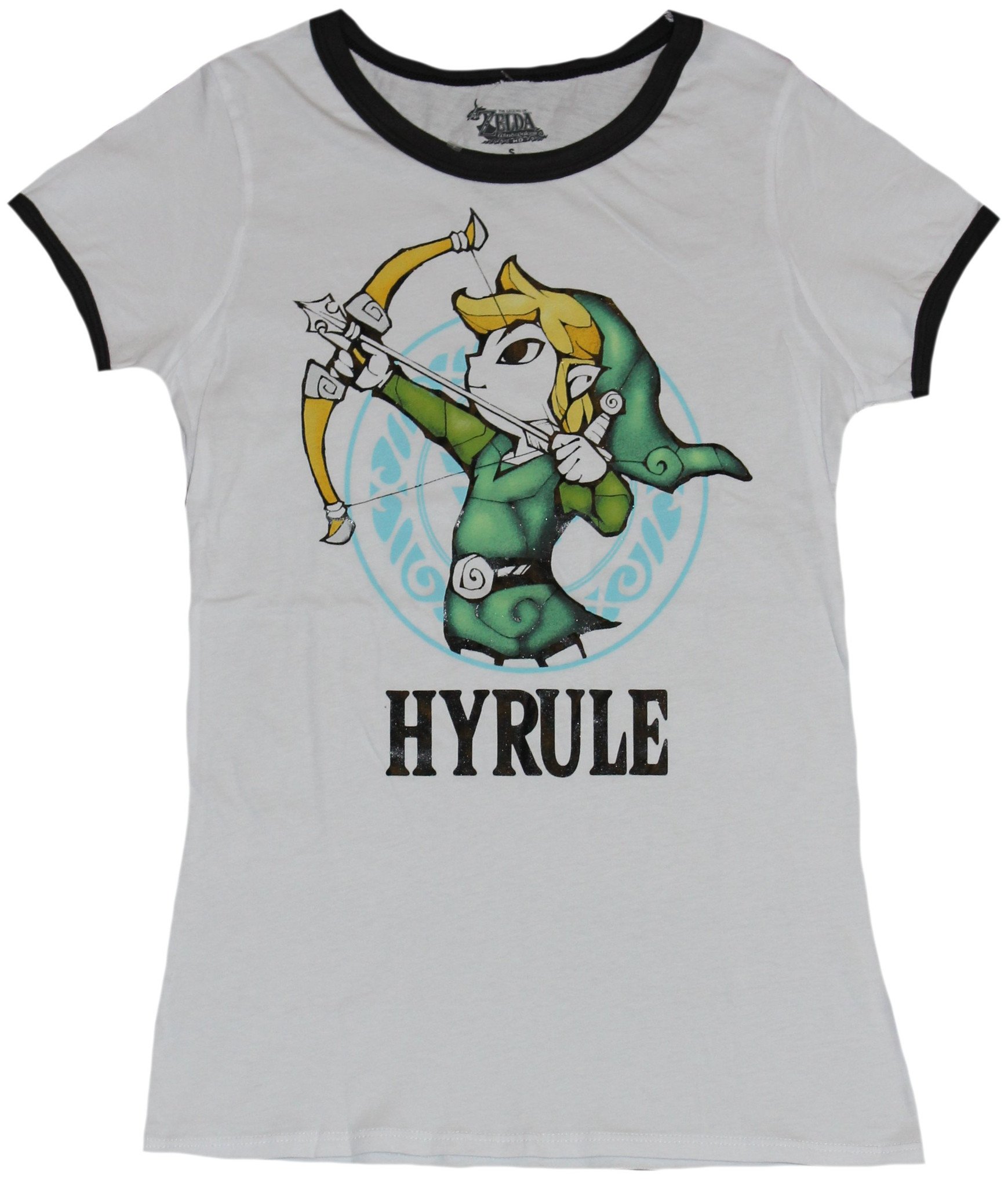 Legend of Zelda Girls Juniors Ringer T-Shirt - Zelda Hyrule Bow Drawing Pic