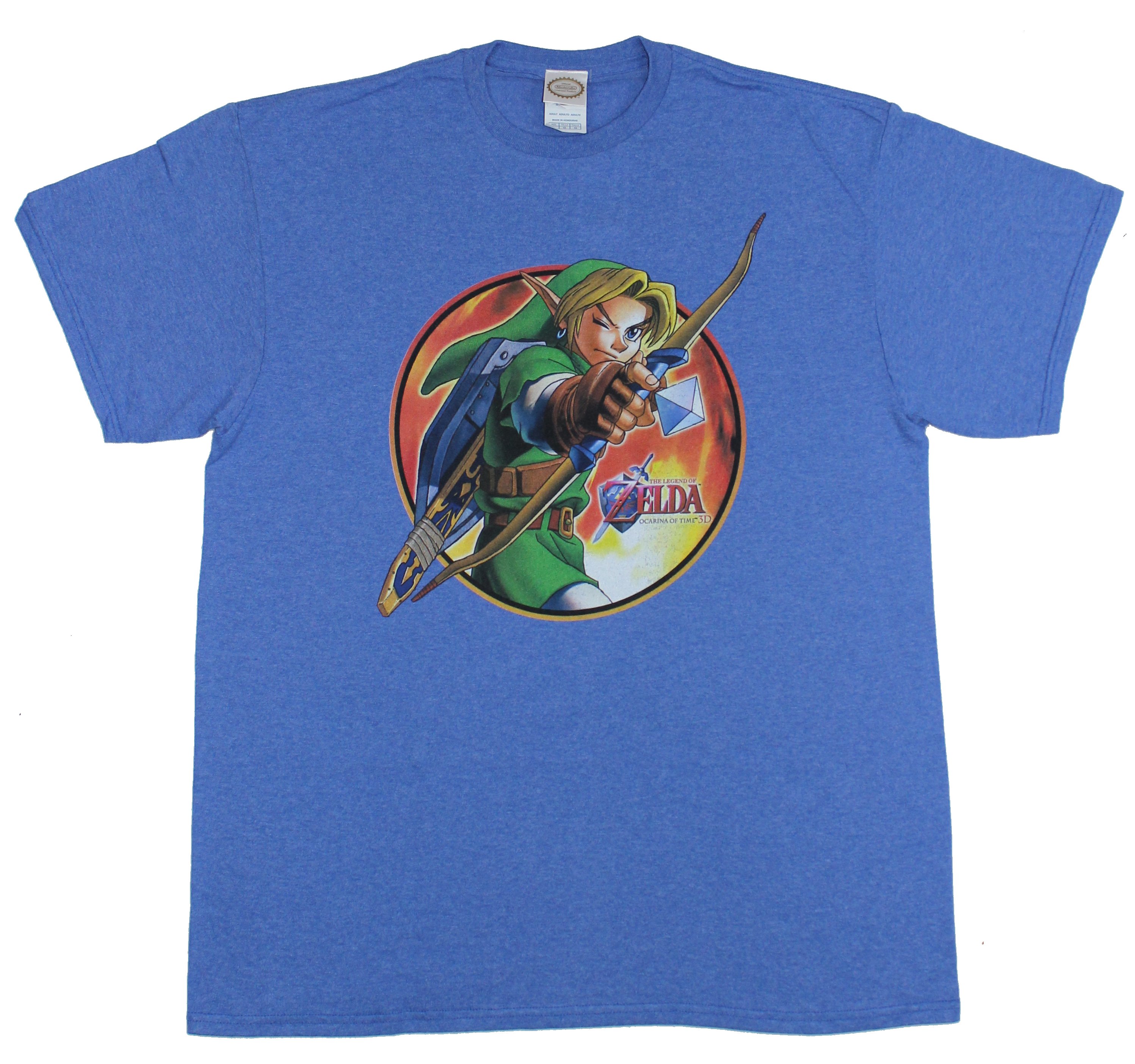 Legend of Zelda Mens T-Shirt - Ocarina of Time Drawn Bow Link Circle Image