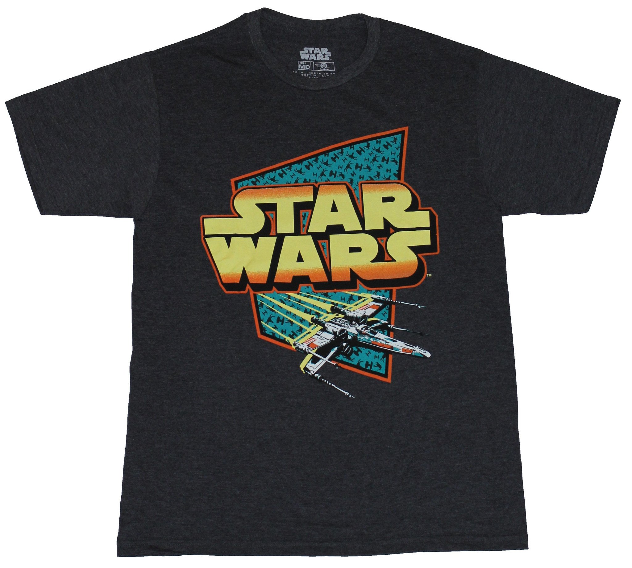 Star Wars Mens T-Shirt - Yellow Logo X-Wing Zipping Under Logo Image