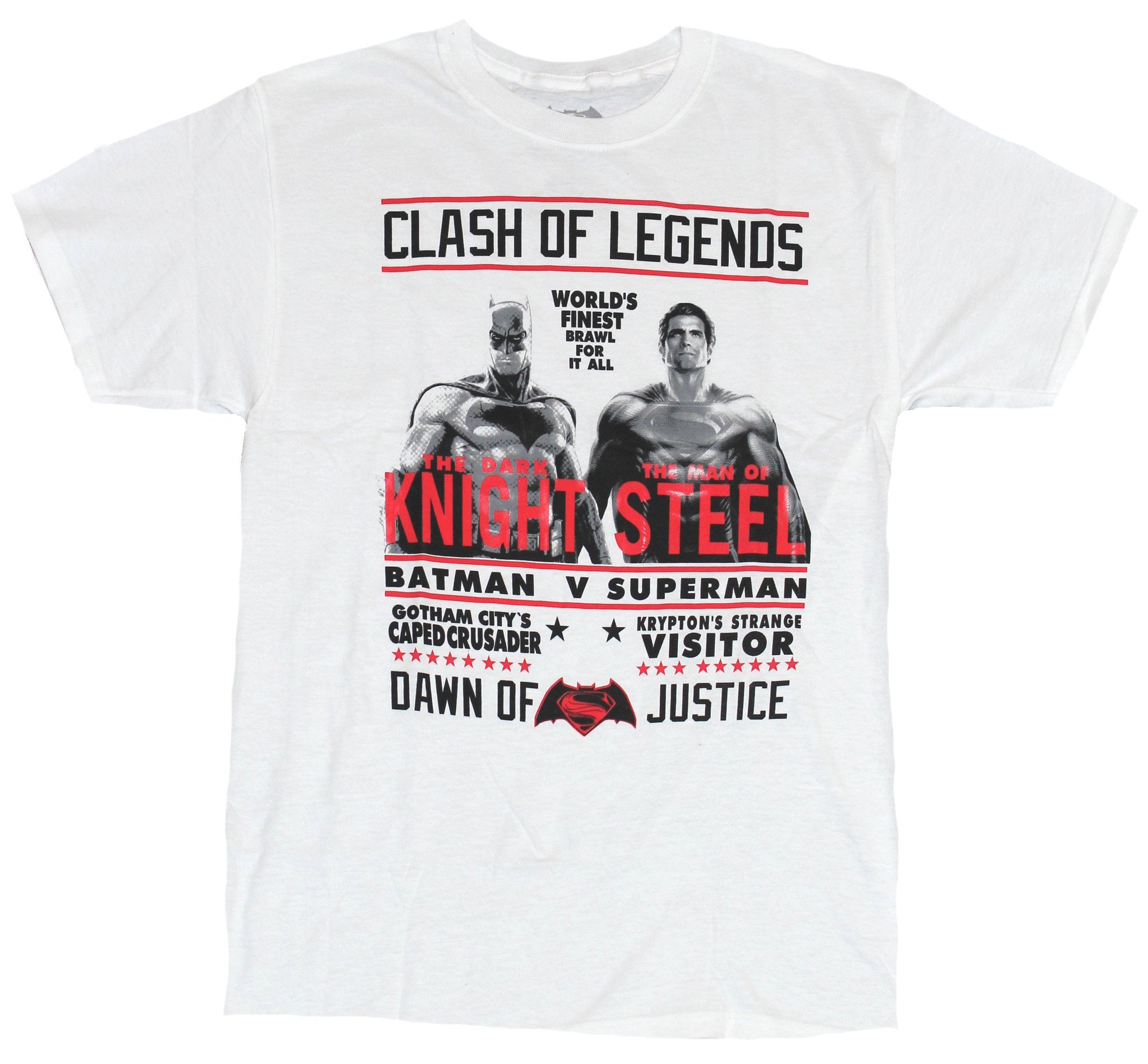 Batman vs. Superman Adult New T-Shirt - Clash of Legends Fight Poster Pic