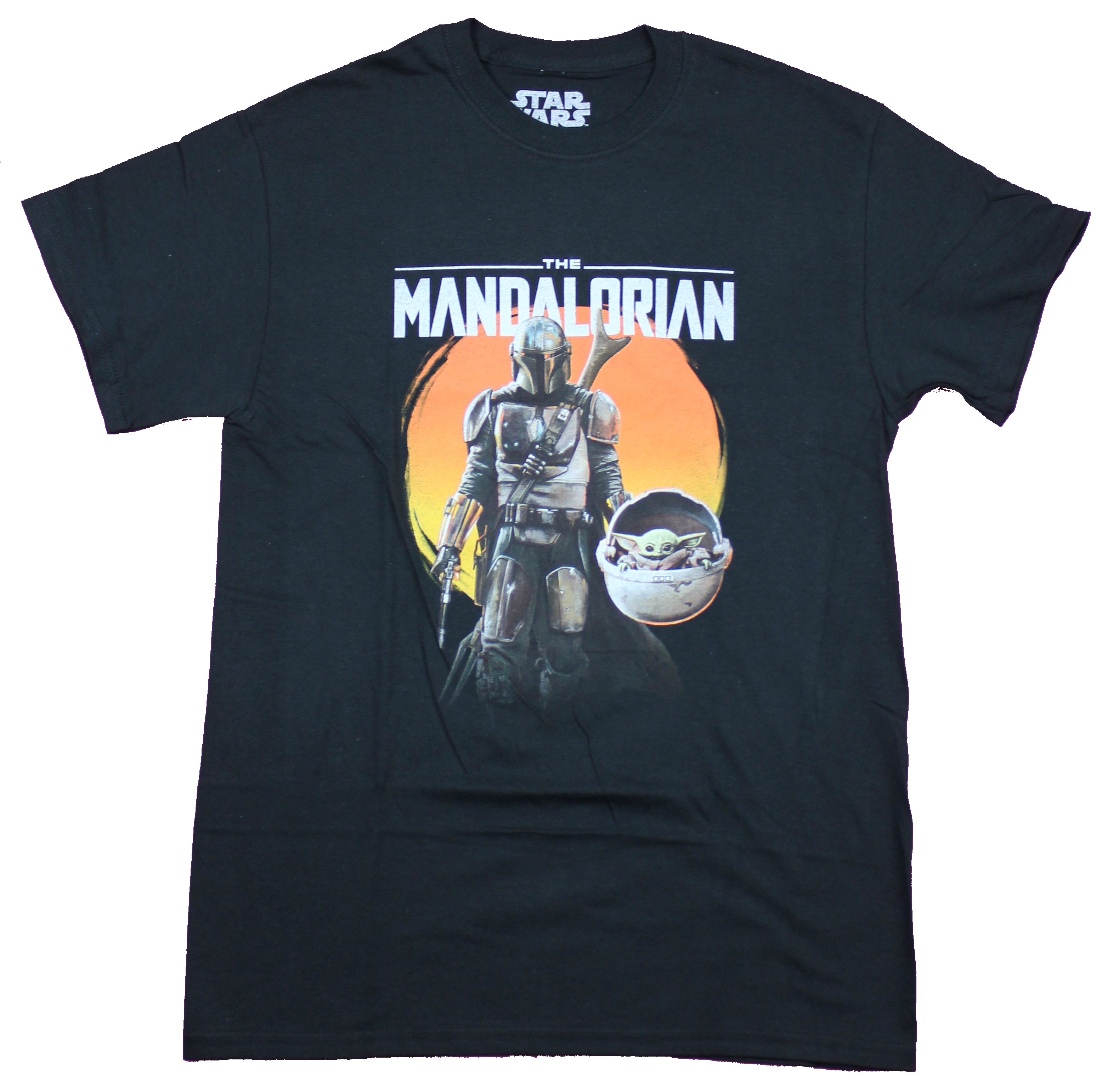 Star Wars The Mandalorian Mens T-Shirt - Mando & Child Orange Circle