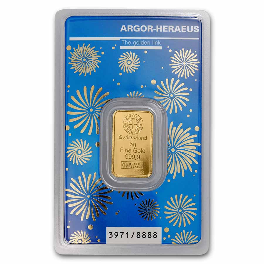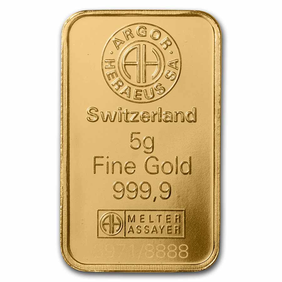 This 5 gram Argor-Heraeus Gold bar is an efficient way to acquire Gold bullion from a reputable manufacturer. Add this 5 gram Gold bar to your cart today!