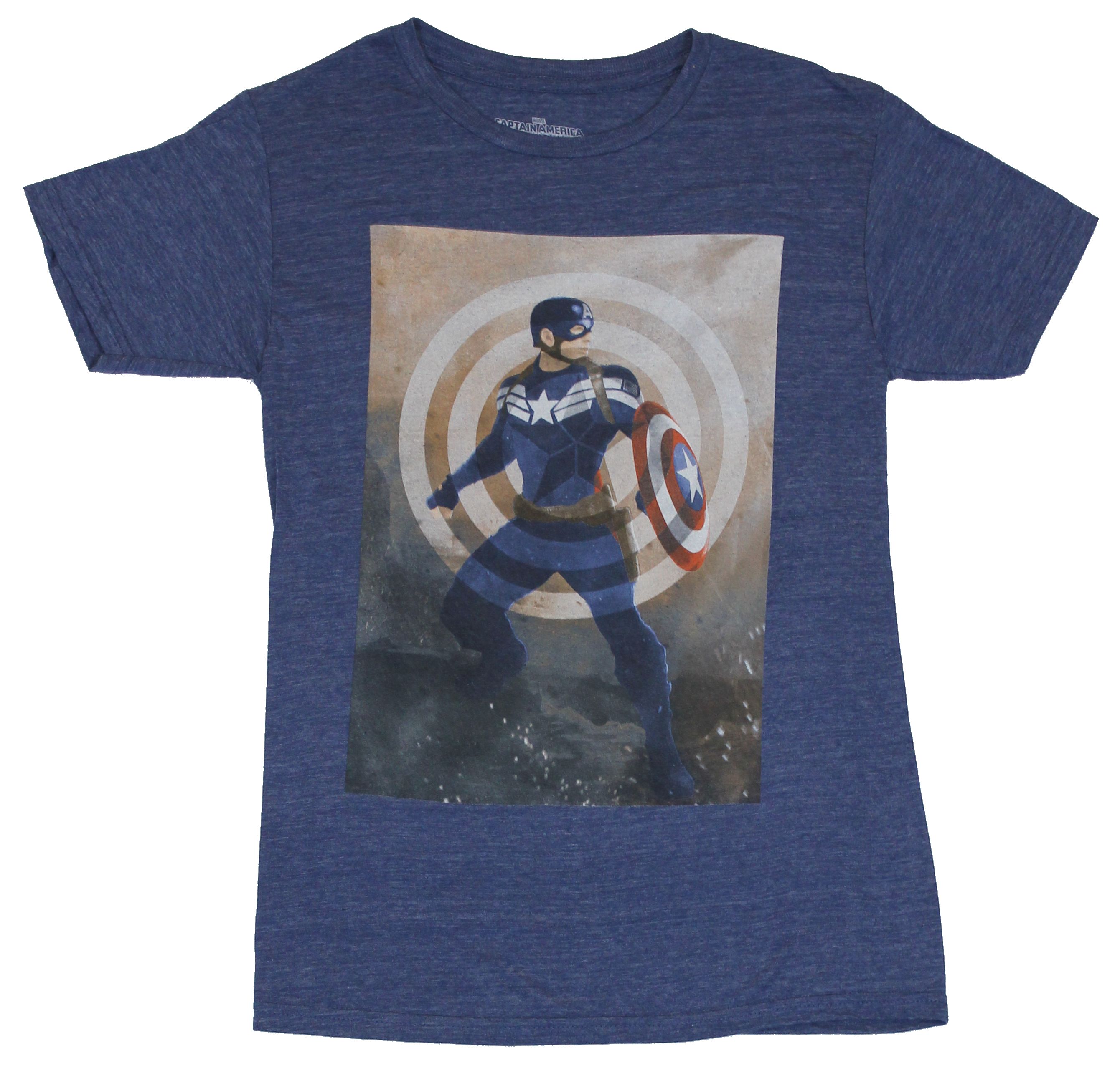 Captain America Marvel Adult New T-Shirt - Movie Style Cap Under Faded Logo