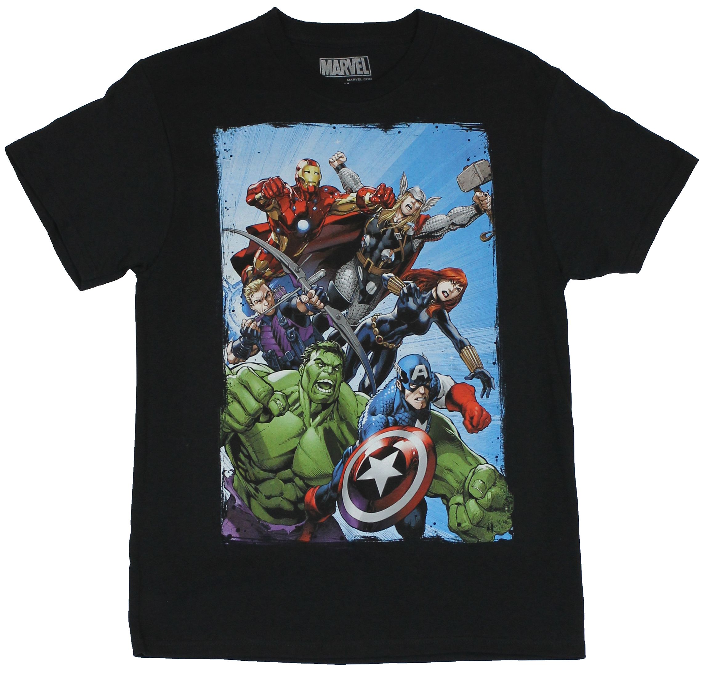 The Avengers Adult New T-Shirt - Comic Style Movie Team Under Blue Sky