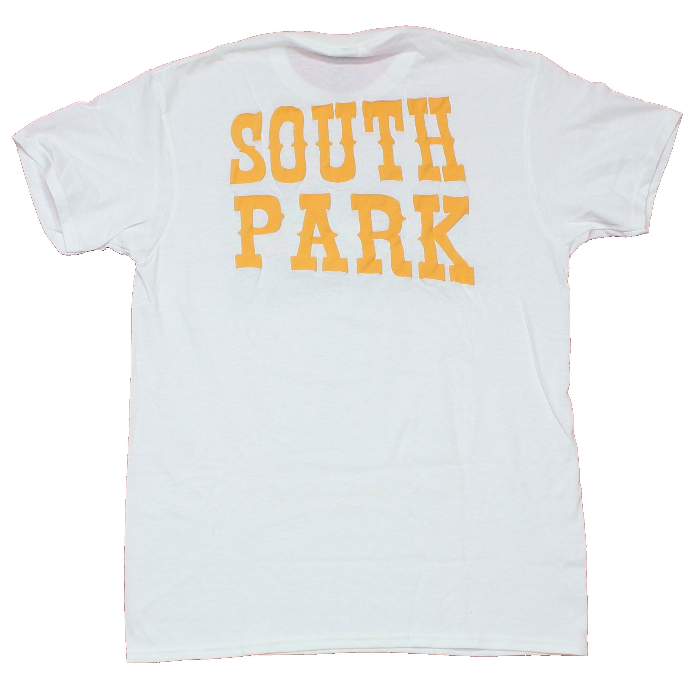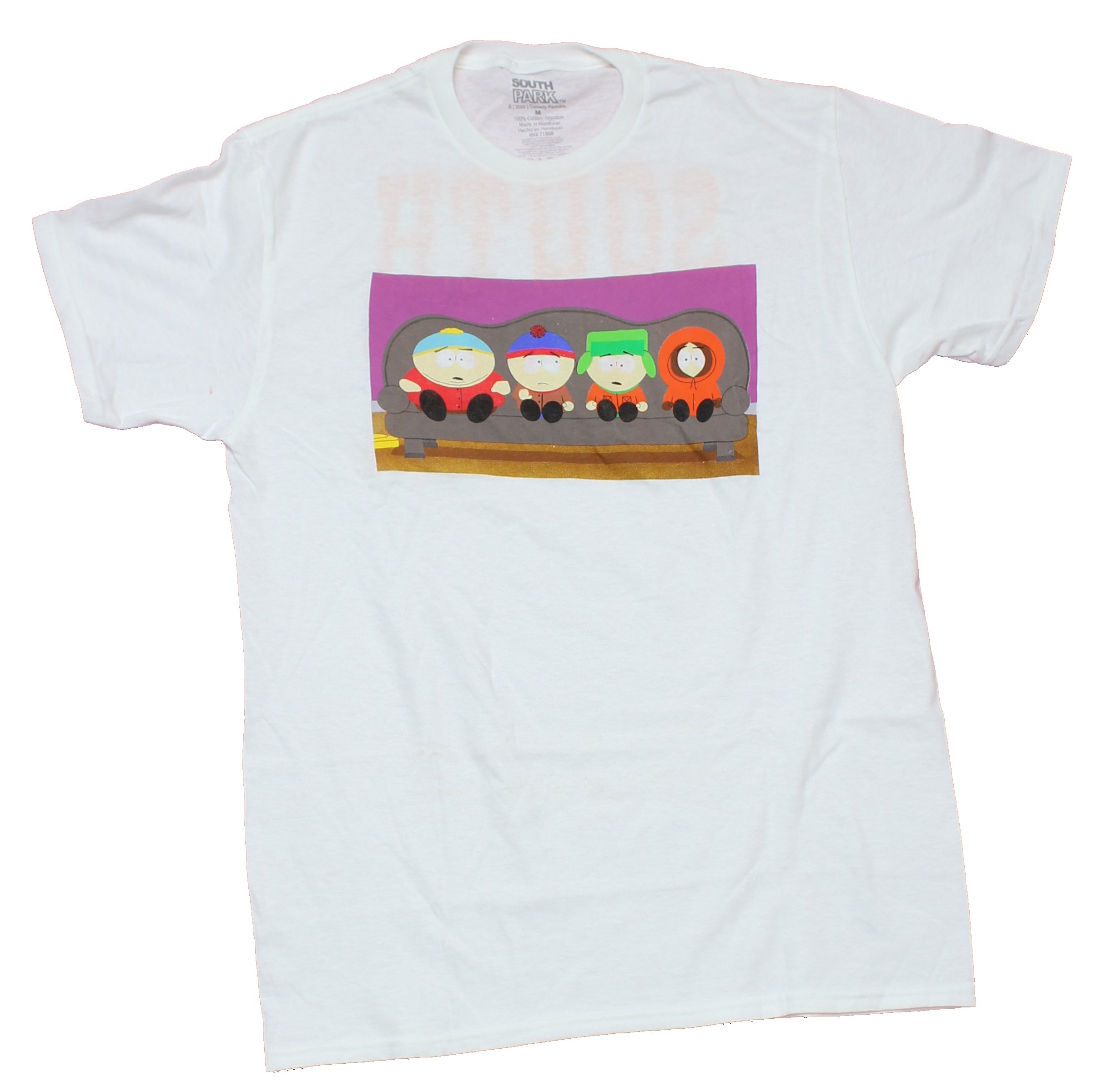 South Park Mens T-Shirt - Seated Foursome Front Raised Letter Back